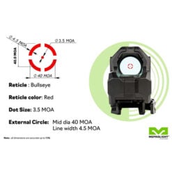 - Reticle: 3.5 MOA dot inside segmented 40 MOA circle