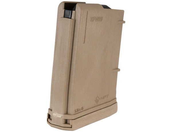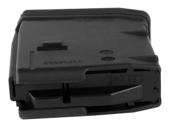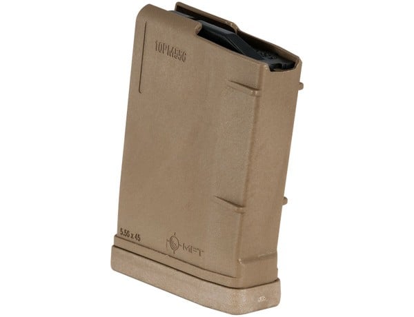 November Savings Sale: use code BFMONTH12OFF for an additional 12% off this item.10 round 5.56 NATO magazine engineered as an enhancement of the standard STANAG design. A flared floor plate aids in extraction and handling. The floor plate provides drop protection, has a paint pen dot matrix area for easy identification marking. Two fully functional drain holes ensure full and proper draining. Simple toolless disassembly with double floor plate safety release tabs allows user to safely release spring tension during disassembly and quick ammo dumps. Long-life stainless steel spring and four-way anti-tilt follower ensure reliable feeding.Oversized bolt catch notch in the rear of the magazine provides enhanced reliability of the bolt catch operation. Toolless disassembly with double floor plate safety release tabs