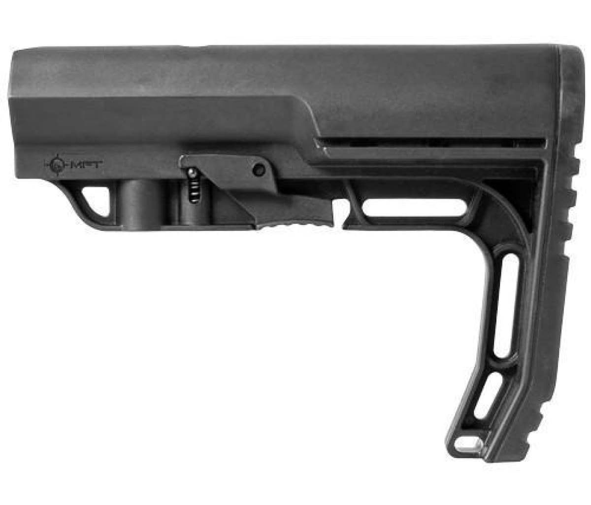 SKU: 24258 Categories: Lower Parts, AR-15 Stocks & Stock Kits, Carbine / Telescoping Stocks DescriptionThe Mission First Tactical BATTLELINK Minimalist Stock is lightweight and designed for easy handling and maneuvering. The BATTLELINK Minimalist Stock is MIL-SPEC compliant, meaning it meets or exceeds the standards set by the military for durability and performance. It is made from a proprietary polymer blend and features an angled non-slip rubberized buttpad that allows faster presentation, even with body armor. The stock also features multiple sling attachment points, making it easy to attach a sling for hands-free carrying. Weighing under 6 ounces, the MFT Battlelink Minimalist Stock is a lightweight platform with enhanced cheek weld.
