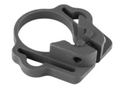 One Point Sling Mount is a single point sling mount for snap clips or conventional slings up to 1.25″ webbing. No tube disassembly necessary; remove collapsible buttstock, slide on tube, position properly and secure.CNC machined from aviation grade aluminum with matte black finish
