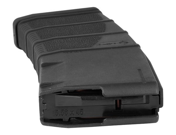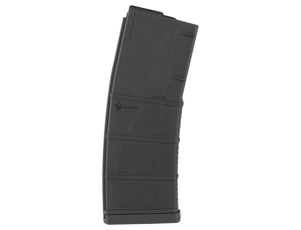 30 round 5.56 NATO magazine engineered as an enhancement of the standard STANAG design. The MFT stipple texture, low profile front ribs and flared floor plate aid in extraction and handling. The floor plate provides drop protection, has a paint pen dot matrix area for easy identification marking and is compatible with tight double and triple magazine pouches. Two fully functional drain holes ensure full and proper draining. Simple toolless disassembly with double floor plate safety release tabs allows user to safely release spring tension during disassembly and quick ammo dumps. Long-life stainless steel spring and four-way anti-tilt follower ensure reliable feeding. Oversized bolt catch notch in the rear of the magazine provides enhanced reliability of the bolt catch operation. Quality and consistency are ensured by using a specially developed, reinforced and super tough polyamide.
