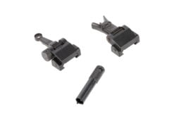 SKU: 8232 Categories: Sights, Optics & Sights DescriptionThe Midwest Industries Combat Rifle sight set brings modern advancements to their line of BUIS. This pair of folding sights are machined from 6061 aluminum and finished with a durable black coating to protect them from wear and weather. They feature a low-profile and snag-free design, so you only notice them when you need them. They feature a durable detent to secure them in the upright or down position during recoil but will collapse to prevent them from bending or breaking if impacted. The rear sight is windage adjustable and features an aperture for precise aiming. The front sight post can be adjusted for elevation with the included tool. Install the Midwest Industries Combat Sights set on your rifle and head to the range to get sighted in.