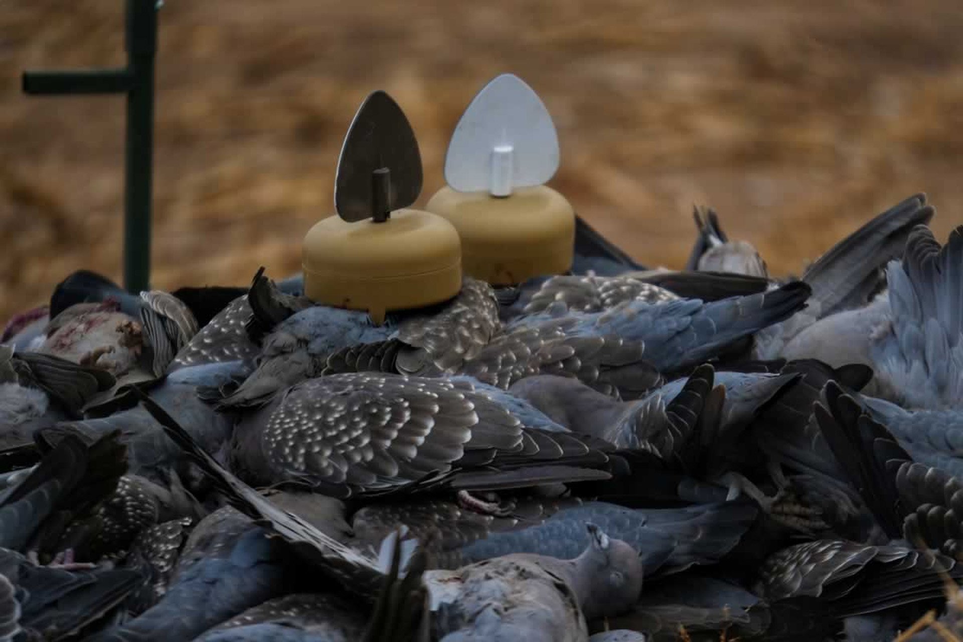 To provide a much more realistic view, the Flock A Flickers® were developed for ducks, using the Spinning Wing concept but with several small wings with varying intermittent flashes scattered throughout the decoys. The patented Mojo Dove A Flicker® decoys bring that same game-attracting ability to dove hunting in a smaller package specifically designed to set on the ground in the dove field. Scatter on the ground in front of your stand for greatly increased attraction. With the Mojo Dove Flicker®decoys, no need to “get the right spot” in the dove field, instead make your spot the X!