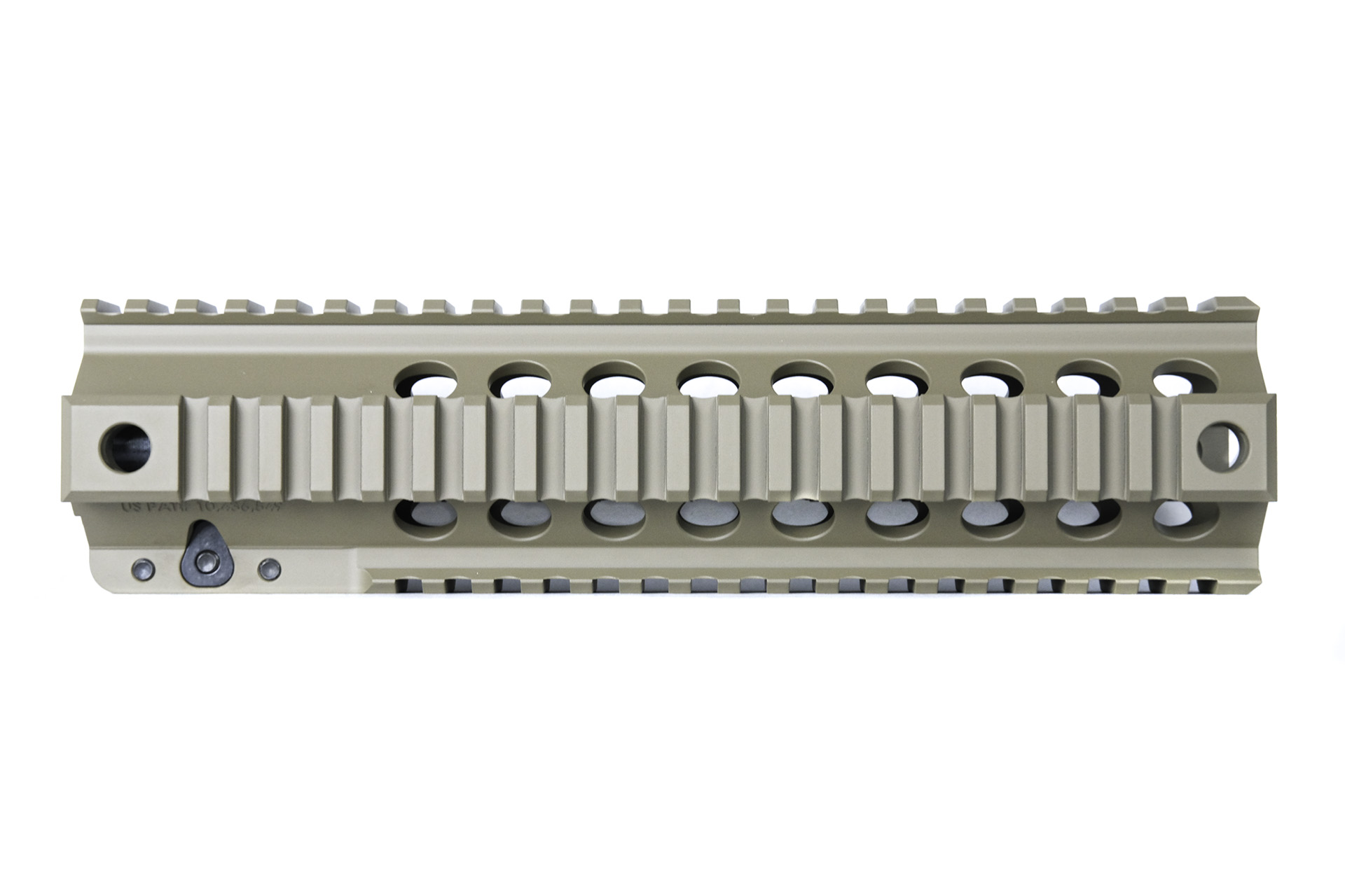 The shockwave generated when firing an AR-15 creates over 1000 G’s of acceleration. This means that a one pound part will generate over 1000 pounds of force every time the rifle is fired. Combined with the thermal cycling generated when firing multiple rounds, it can be very difficult to keep a handguard from slipping forward or rotating. Many attempts have been made to solve this problem. Some solutions are overly complex, resulting in difficult installation and high manufacturing cost. Some designs, like the popular key seat, are overly simple. The key seat will stop a handguard from coming completely off of the rifle; however, it still allows some forward slip and 360 degrees of rotation.