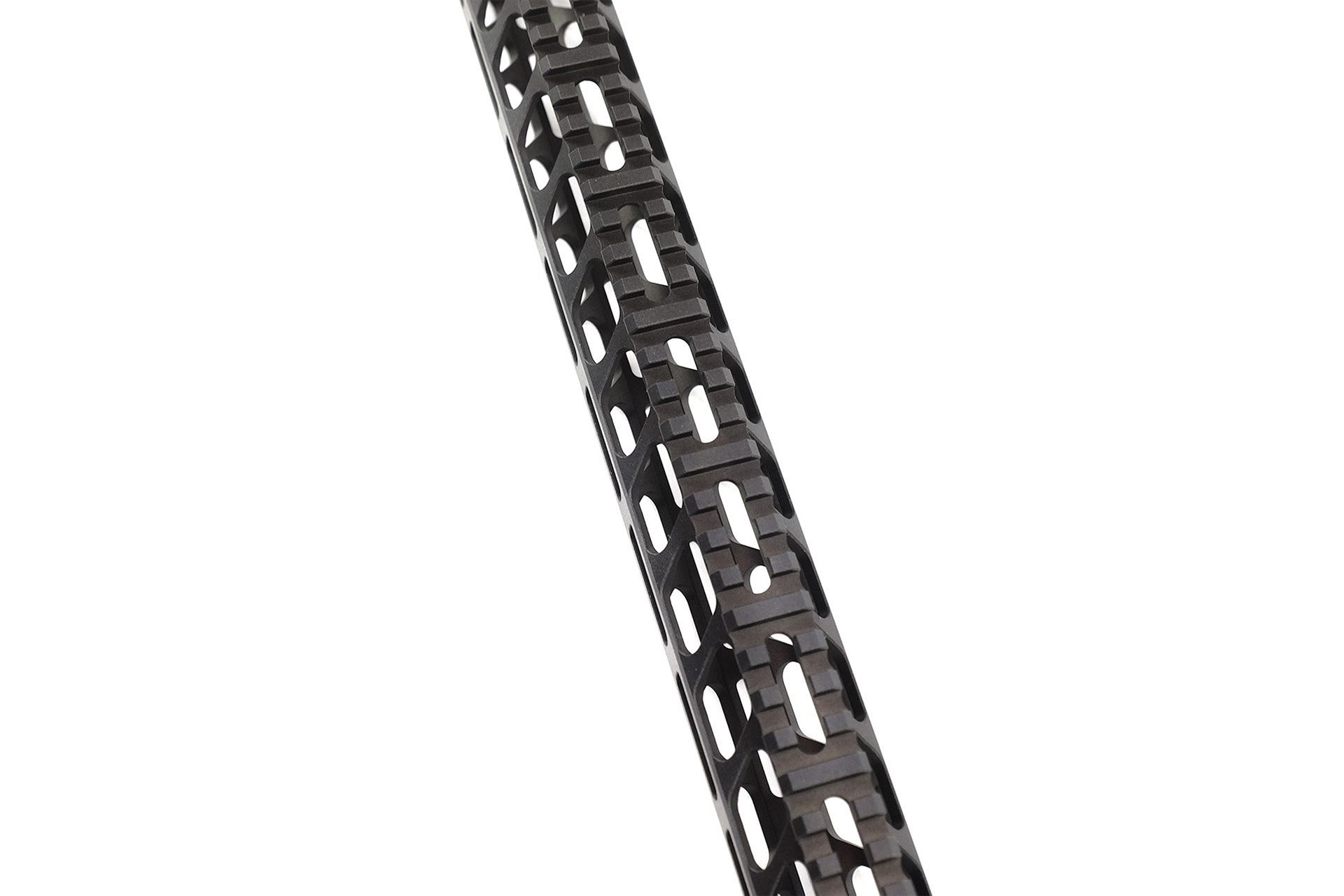 The NBS Free Float M-LOK Handguard is a no-nonsense American Made M-LOK compatible rail system designed for versatility and simplicity. It features a picatinny top rail and M-LOK attachment slots on the 3, 6, and 9 o’ clock positions. Precision machined from 6061-T6 aluminum extrusions then type 3 hard coat anodized you can be sure that this handguard can withstand an incredible amount of abuse. Its slim profile feels great in the hand yet with a 1.35″ inside diameter it can accommodate any true low profile gas block and even has enough clearance to recess some muzzle devices such as flash cans and linear compensators. It is a true do-anything rail system and the cost-value ratio makes it very hard to pass-up.