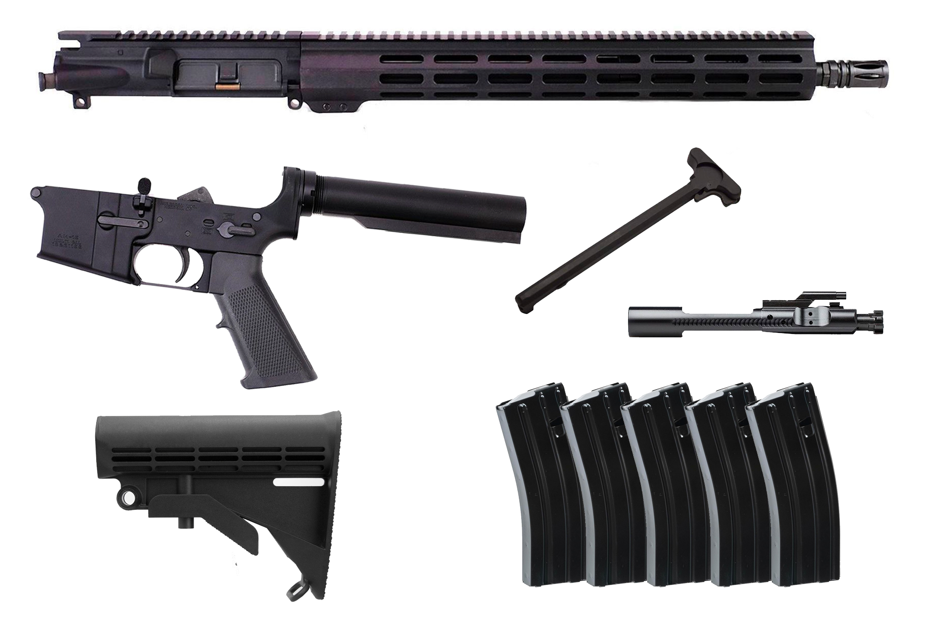 NBS 16″ 5.56 NATO Midlength Nitride M-LOK Builders Kit w/ 5 Magazines