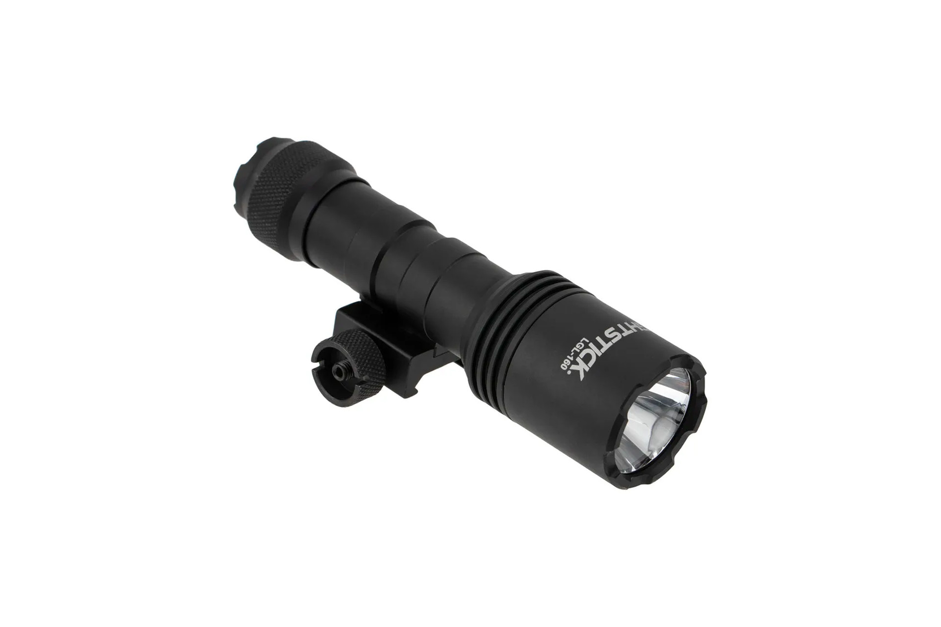 The Nightstick LGL-160 is a full-size long gun light designed for rifles, carbines, or shotguns. It produces up to 1100 Lumens with a highly efficient LED and parabolic reflector that extends the focused beam up to 304 meters. This full size long gun light comes equipped with a standard tail cap switch and reversible thumb screw Picatinny mount for easy out-of-the-box installation. Included is an offset Picatinny mount that allows the user to clear front sights and other mounted equipment. Choose between momentary-on and constant-on light modes with the tailcap switch or 6-inch remote pressure switch. The lightweight and durable 6061-T6 aluminum construction is impact and chemical resistant as well as IP-X7 waterproof. It is powered by the two included CR123 batteries for up to 2 hours of runtime and comes with a limited lifetime warranty.