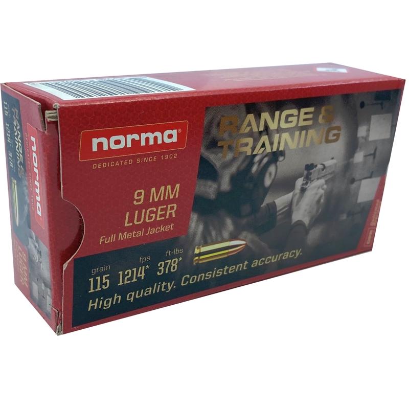 Norma 9mm 115gr FMJ Norma Range/Training Bulk Handgun Ammo - 1000 Rounds - 202200023