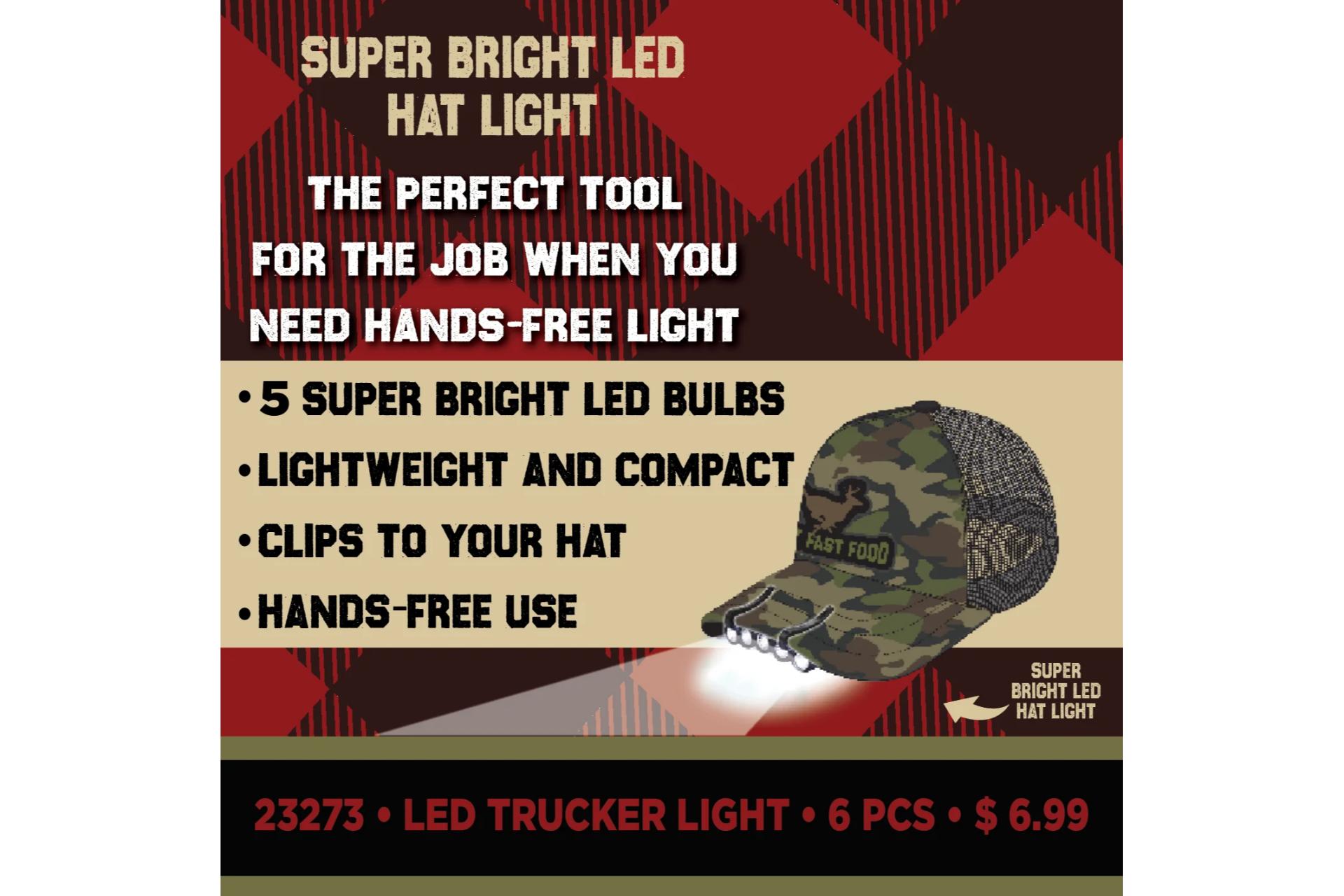 Show off your WILD SIDE with Big Bubba Hat Company’s Trucker Hats and accessories. Floor display includes an assortment of Trucker Hats, Waterproof Stickers, Air Fresheners (Strawberry, New Car, Midnight Ice Scents) and LED Hat Lights.