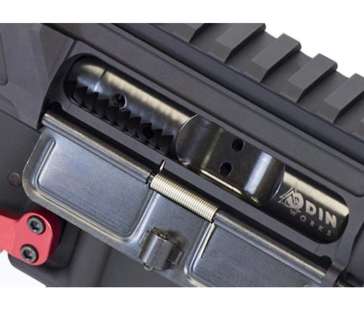 SKU: 2266 Categories: AR-15 BCGs, Bolts, Carriers & BCGs (Bolt Carrier Groups) DescriptionA good quality BCG (Bolt Carrier Group) is a central component of any AR-15. It performs many essential functions including chambering cartridges, extracting spent cases, and ejecting them. The ODIN Works AR-15 Black Nitride Bolt Carrier Group is compatible with .300 Blackout and .223/5.56 cartridges. The carriers are made of case-hardened, fully heat-treated 8620 Steel. They have a hard chromed 8740 steel firing pin, and a case-hardened 9310 steel bolt. It has a factory staked 4130 steel gas key, a hardened 4340 steel extractor and cam pin. The bolt, bolt carrier, and cam pin have a Black Nitride finish to minimize friction and resist corrosion. This BCG is Magnetic Particle Inspected (MPI) and High Pressure Tested (HPT) to ensure precision tolerances. Make this multi-caliber bolt carrier group the highlight of your newest AR15.