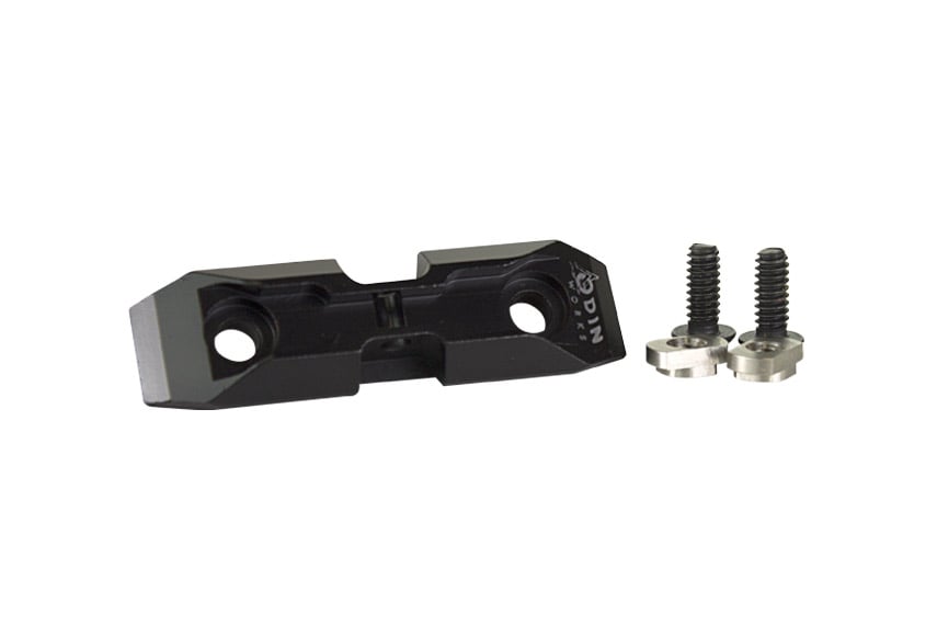 Harris Style bipods use a mounting system that is made to work with the forward sling swivel on a rifle. This system works differently than others such as the Picatinny rail, so a specially designed adapter is required if there is no forward sling swivel on the rifle you are using. The adapter is machined from 6061 Aluminum for tensile strength, and it is anodized in matte black or red so the outside surface is also well protected. It comes with all the hardware you need to mount the M-Pod adapter to the forend, and its designed to the bipod can mount facing forward or rearward.