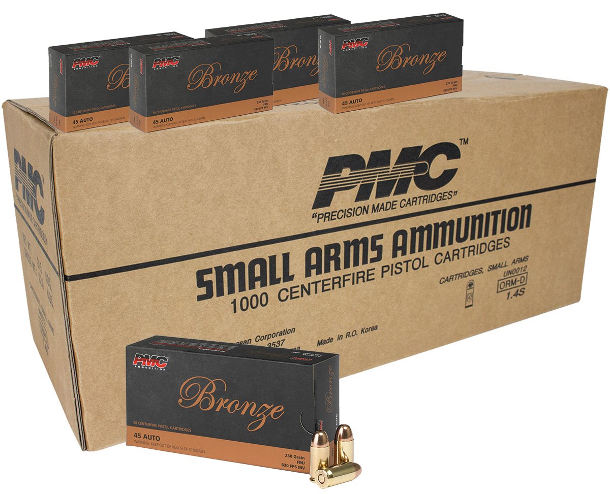 The PMC Bronze .45 ACP 230-grain FMJ 1,000 round case is an excellent choice for the shooter interested in saving some money by buying ammo in bulk and spending more time putting rounds downrange.