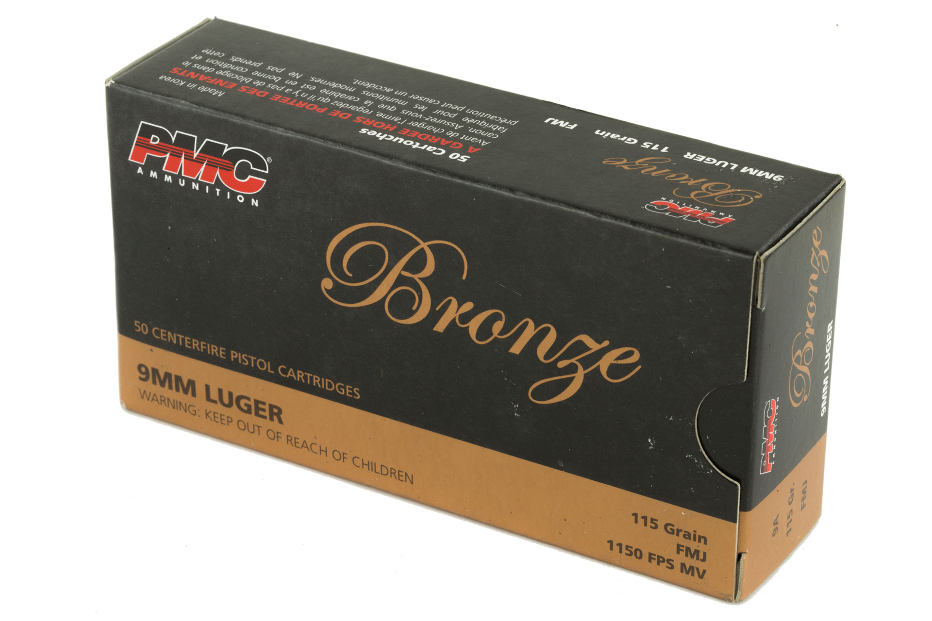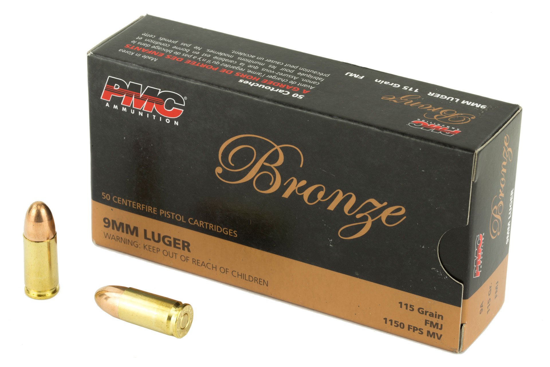 PMC BRONZE 9MM 115 GRAIN FULL METAL JACKET Handgun Ammo - 50 Rounds - 741569000000