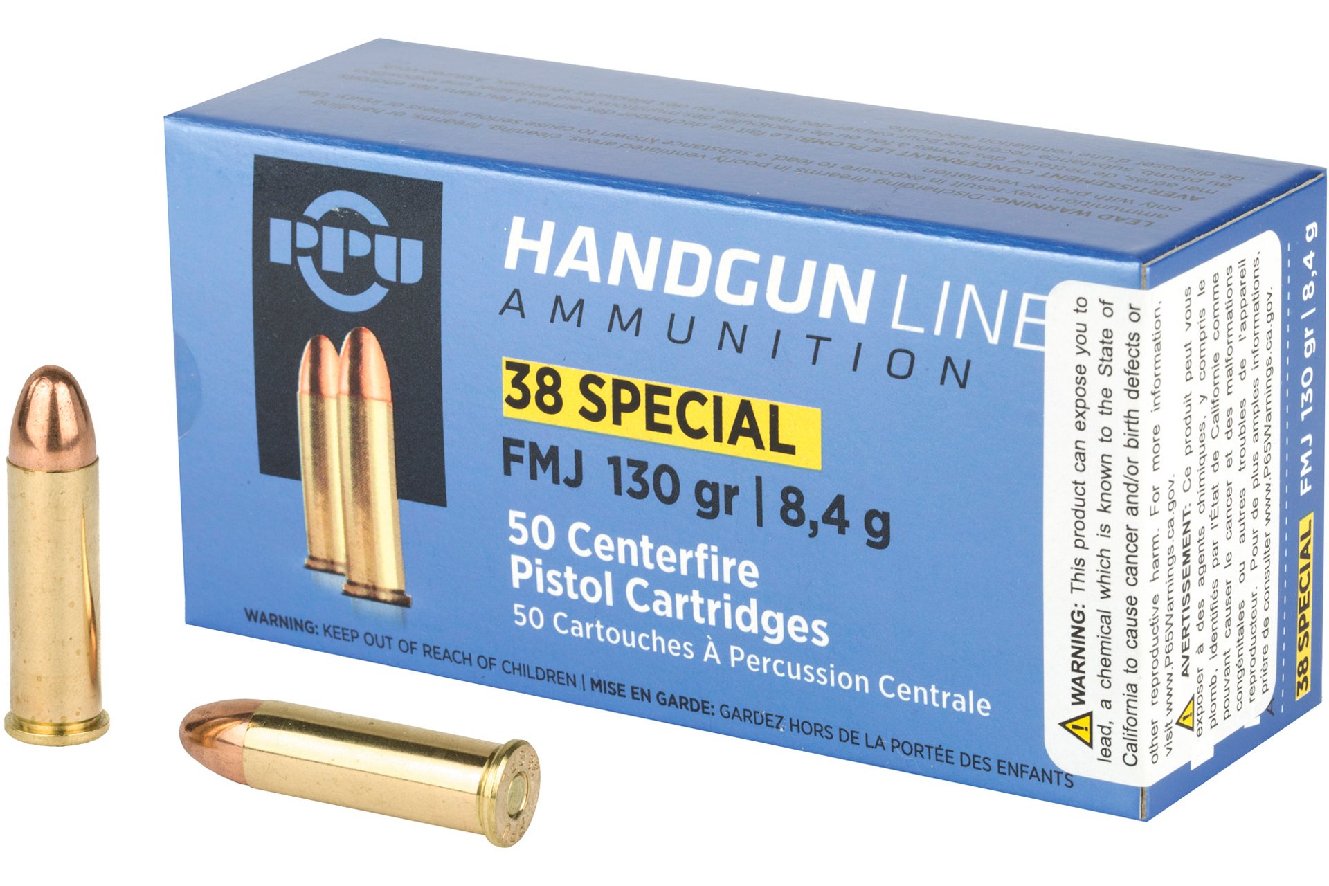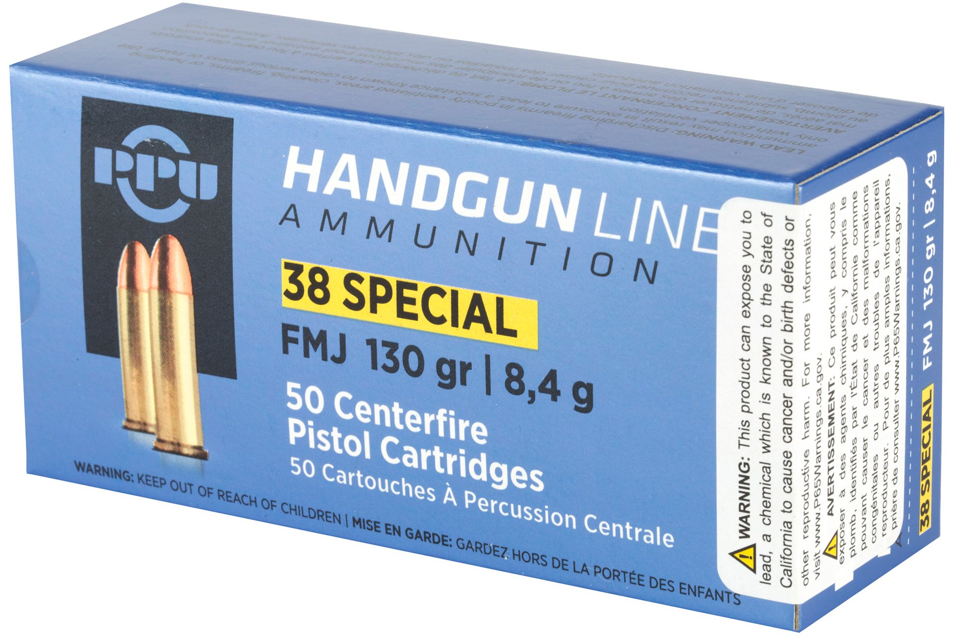 PPU PPH38SF Handgun 38 Special 130 gr Full Metal Jacket (FMJ) Handgun Ammo - 50 Rounds - PPH38SF
