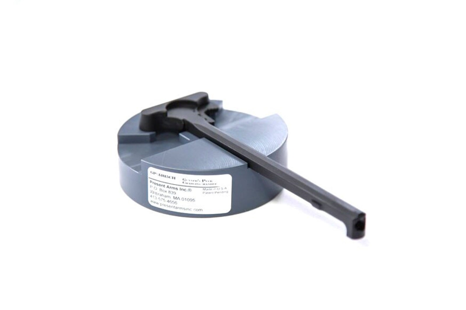 SKU: 6400 Categories: Overstock, Tools, Tools & Cleaning DescriptionThe Present Arms Gunner’s Puck for the AR Charging Handle is a stand along platform to safely and securely hold the charging handle for latch repairs or change outs. Made of non-marring polymer.