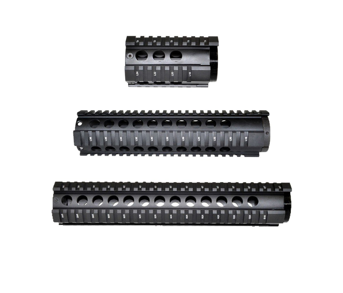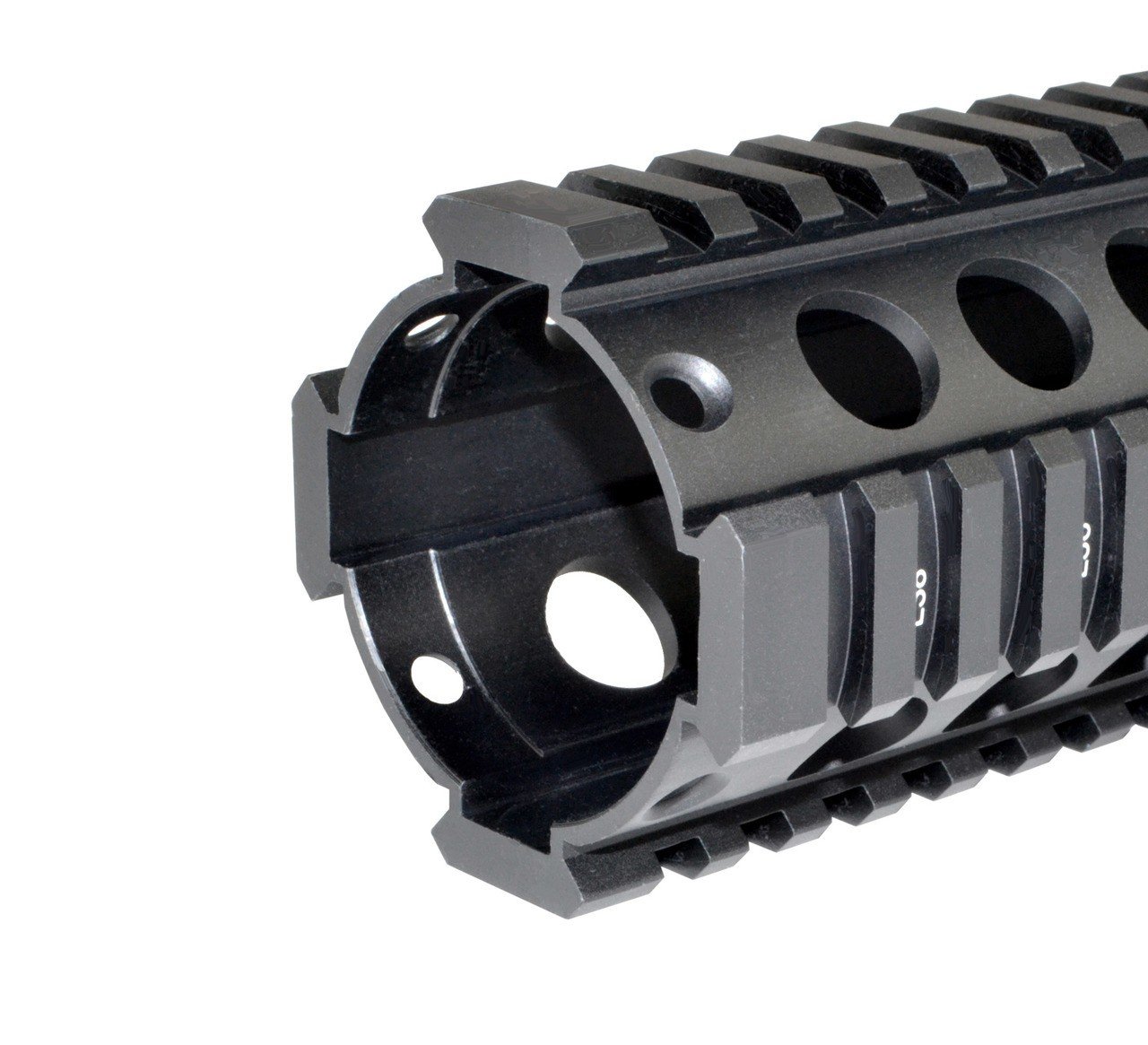 • Aluminum with 9 Picatinny slots on top, 7 on left, right & bottom (total 30 slots).