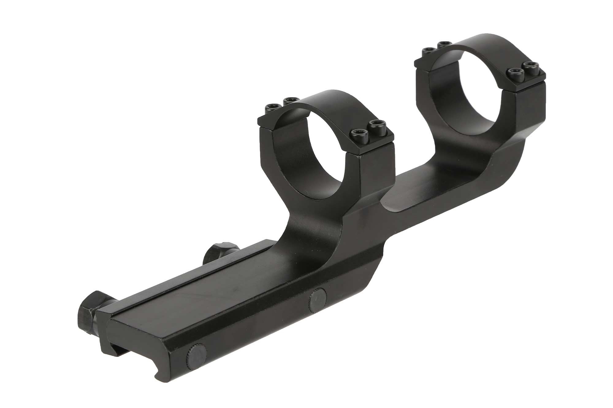The Primary Arms Deluxe Extended AR-15 Scope Mount is ideal for shooting a variable power optic in the “nose to charging handle” position on M4, AR-15, and similar “flat-top” 1913 Picatinny mounting platforms. It’s a great option for 1-4x and 1-6x scopes with 30mm tubes. Aluminum construction, durable matt black anodized finish. 2.28 inches of clearance between the rings. Places the center of your 30mm tube scope 1.5 inches above the rail.