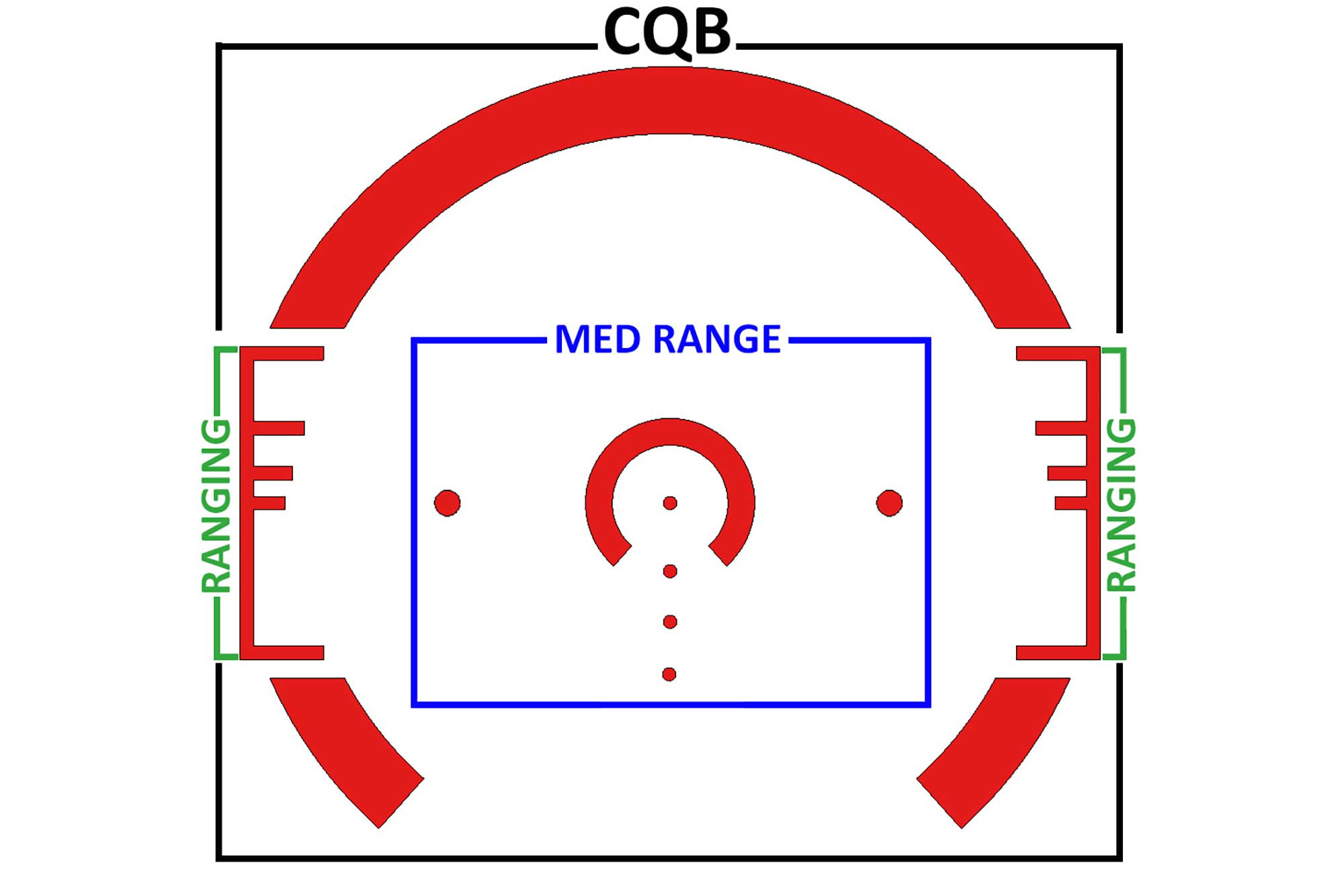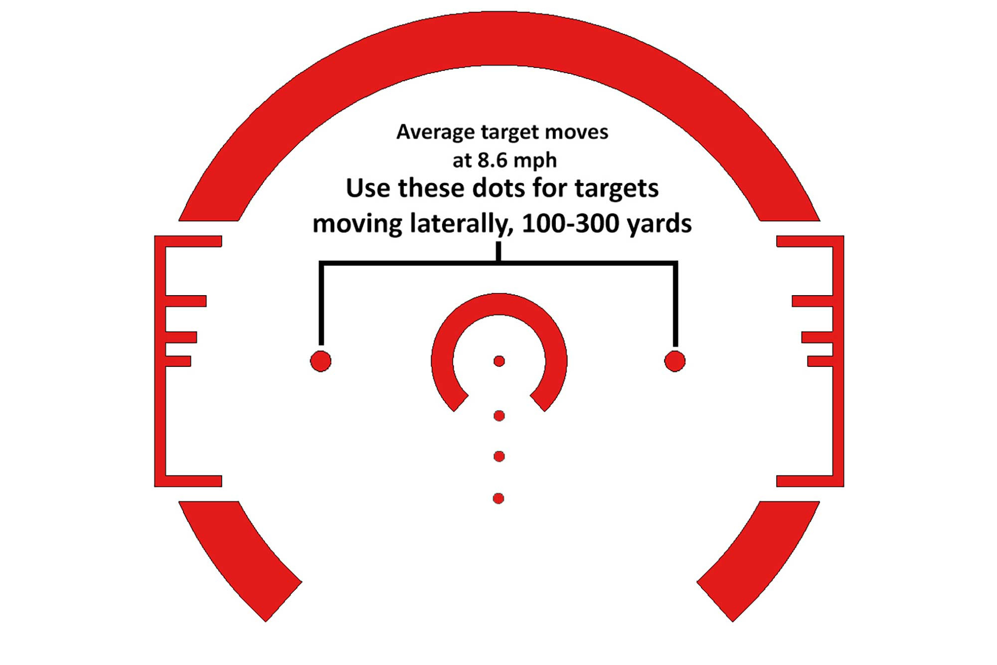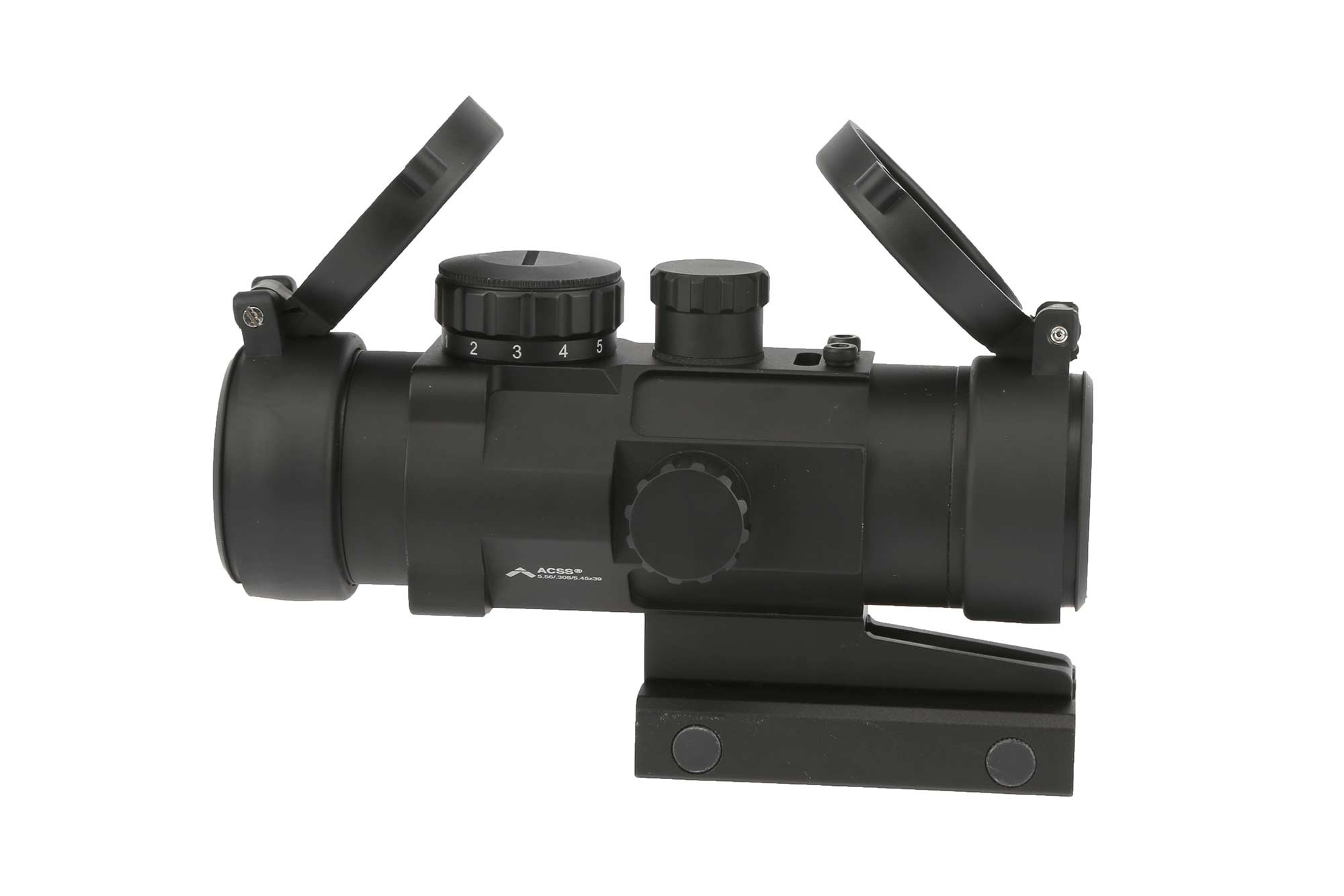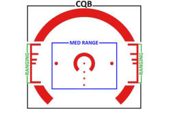 The heart of our tough 2.5X Prism Scope is the ACSS 5.56 CQB-M1 reticle that combines ranging, wind leads, moving target leads, and ballistic drop compensation out to 600 yards. The outer horseshoe of the glass etched reticle is used for close quarters engagement, simply place the generous semi-circle on the target and run with it! Each side of the horseshoe also has our integrated ranging system. Place the bottom of the target on the bottom rung and range up. If you know your targets are roughly 18 inches wide, they can be ranged on the side Auto Range system, or directly on the BDC hold overs! Two dots on either side of the inner horseshoe offer a moving target lead moving with an average speed of 8.6 MPH. Each step of the BDC system includes a 5 MPH wind hold, drastically improving first hit probability at any range. As an added bonus, the glass etched reticle does not require batteries or illumination, but 11 brightness settings (including daylight bright) allow for fast acquisition in close quarters, or enhanced visibility in fading light, powered by a common CR2032 battery!