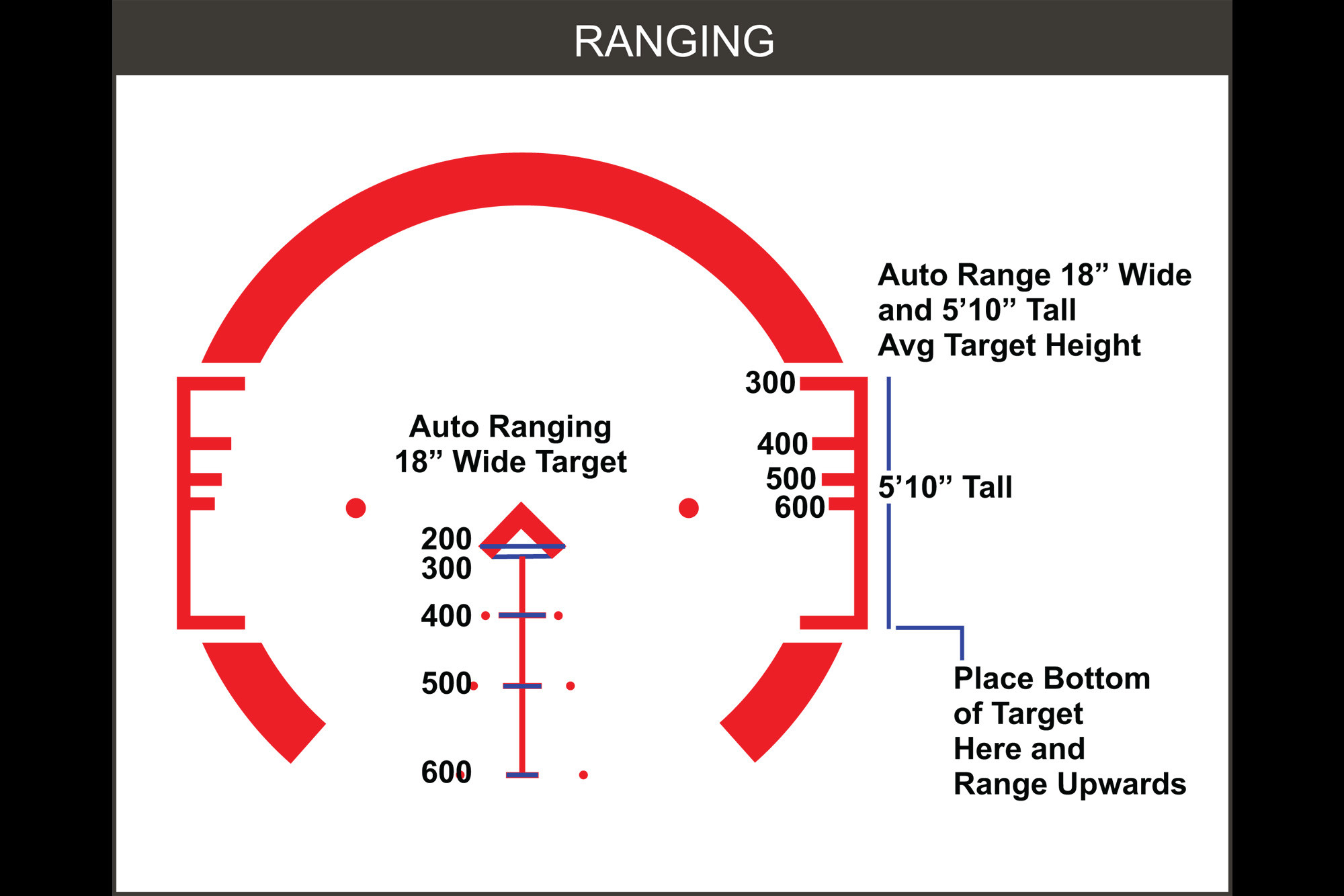 The heart of our tough Gen III 3X Prism Scope is the improved ACSS-CQB reticle that combines ranging, wind leads, moving target leads, and ballistic drop compensation. The outer horseshoe of the glass etched reticle is used for close quarters engagement, simply place the generous semi-circle on the target and run with it! Each side of the horseshoe also has our integrated ranging system. Place the bottom of the target on the bottom rung and range up. As an added bonus, the glass etched reticle does not require batteries or illumination, but 11 brightness settings (including daylight bright) allow for fast acquisition in close quarters, or enhanced visibility in fading light, powered by a common CR2032 battery!