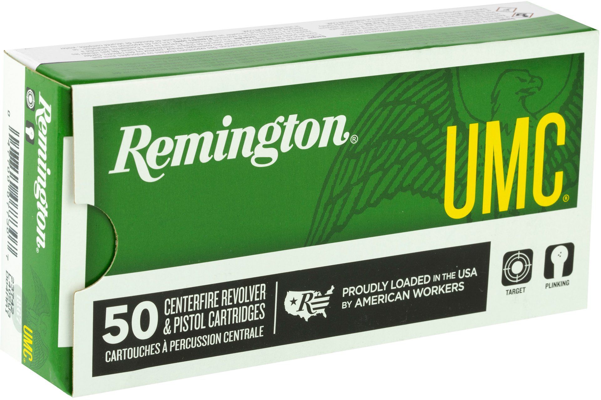 All UMC handgun ammunition is American-made in Lonoke, Arkansas, using first-quality, factory-fresh brass and clean-shooting Kleanbore primers to provide the best value for practice, personal defense and hunting. UMC handgun ammunition offers the choice of full metal-case, soft point, jacketed hollow point bullets or leadless (leadcore bullets and lead-free primers) in several popular handgun calibers. You’d be hard-pressed to find a better value anywhere.