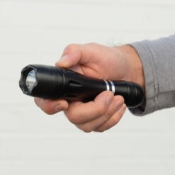 Stay safe and prepared with the SABRE 2-in-1 Tactical Series Stun Gun with LED Flashlight. Featuring a 2.517 µC (Microcoulombs) charge, this stun gun produces intolerable pain according to the National Institute of Justice. Maintain peace of mind knowing that the safety switch will help to prevent an accidental discharge. A built-in 130-lumen LED light lights your way to safety in emergencies such as a power outage or use it for everyday tasks such as walking the dog at night. It also features 3 light modes (high, low and strobe); the strobe setting may help to disorient an attacker from a safe distance, allowing you to escape to safety without needing to use the stun feature. For maximum accessibility, the stun gun comes with a belt holster, making it easier to grab in high stress moments when seconds count. Ease your mind knowing you can get multiple uses out of your stun gun thanks to the built-in battery. Recharge the unit with the included charging cable, saving the expense and waste of batteries.