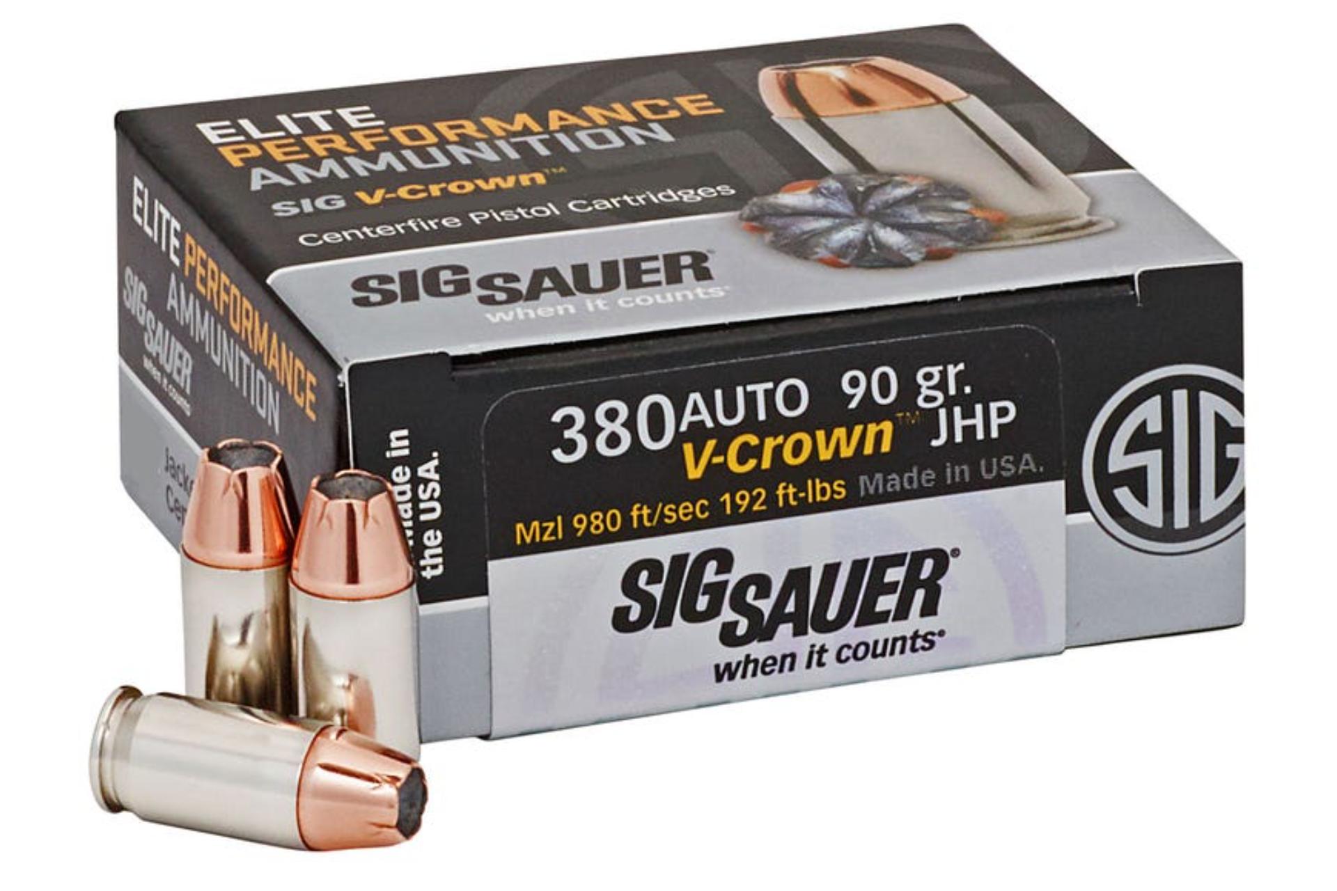 Sig Sauer 380 Auto 90Gr V-Crown JHP Ammunition Handgun Ammo - 500 Rounds - E380A1-500