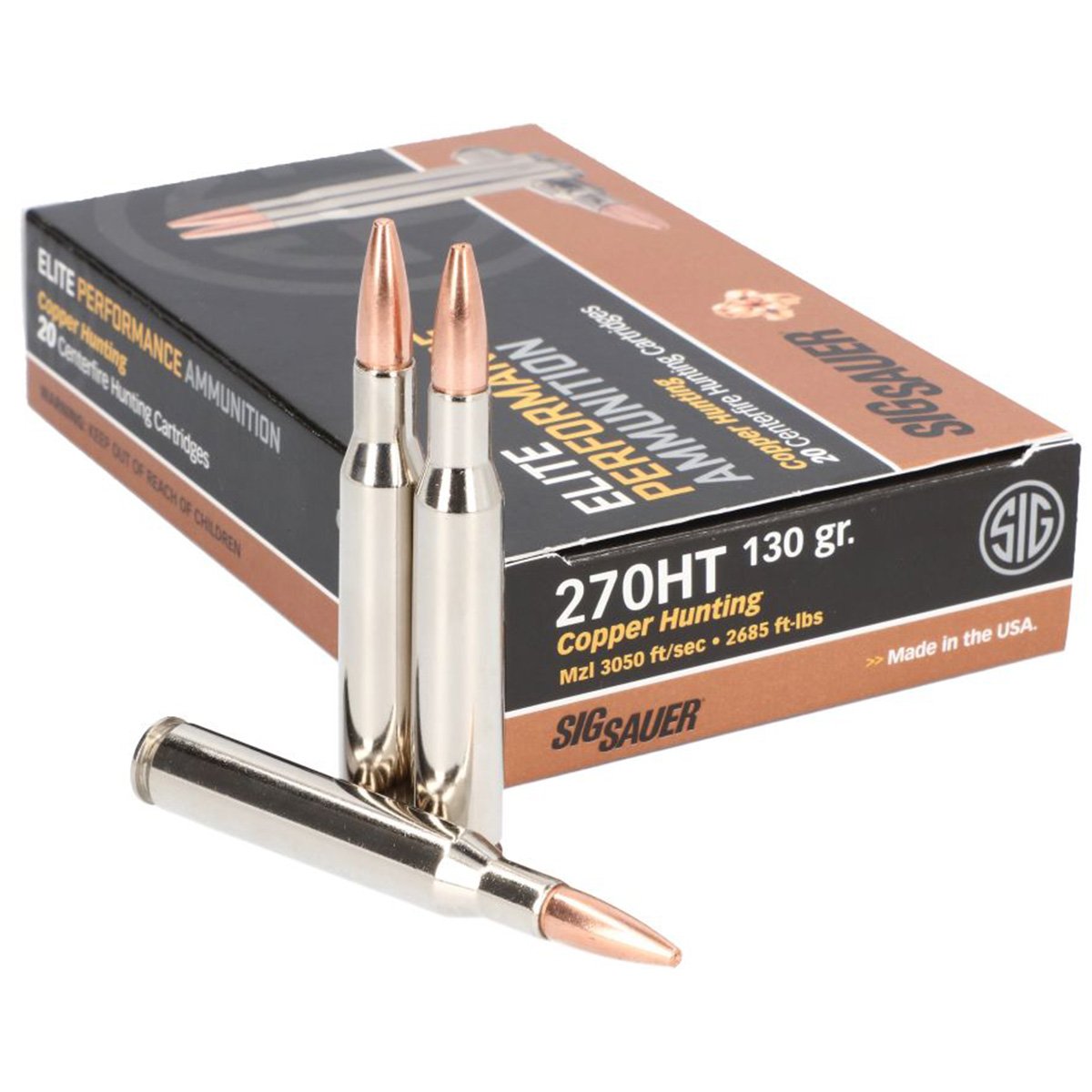SIG Sauer Ammo 270 Win 130Gr Elite Series Copper Solid Copper Projectile Rifle Ammo - 20 Rounds - E270H1-20