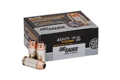 SIG Sauer V-Crown Elite Performance ammunition is an impressive cartridge that is built from the ground up to be a ultra reliable and accurate defensive cartridge. Using only the finest components combined with SIG Sauer’s exacting standards and modern manufacturing processes ensure that shooters have the very best they have to offer. The V-Crown Bullet offers incredible performance with reliable feeding and massive expansion for an impressive wound channel. The casing is nickel plated brass for enhanced lubricity, and improved feeding and extraction with a greatly reduced corrosion. When you need the best for your defensive needs you need SIG Sauer V-Crown Elite Performance ammunition.