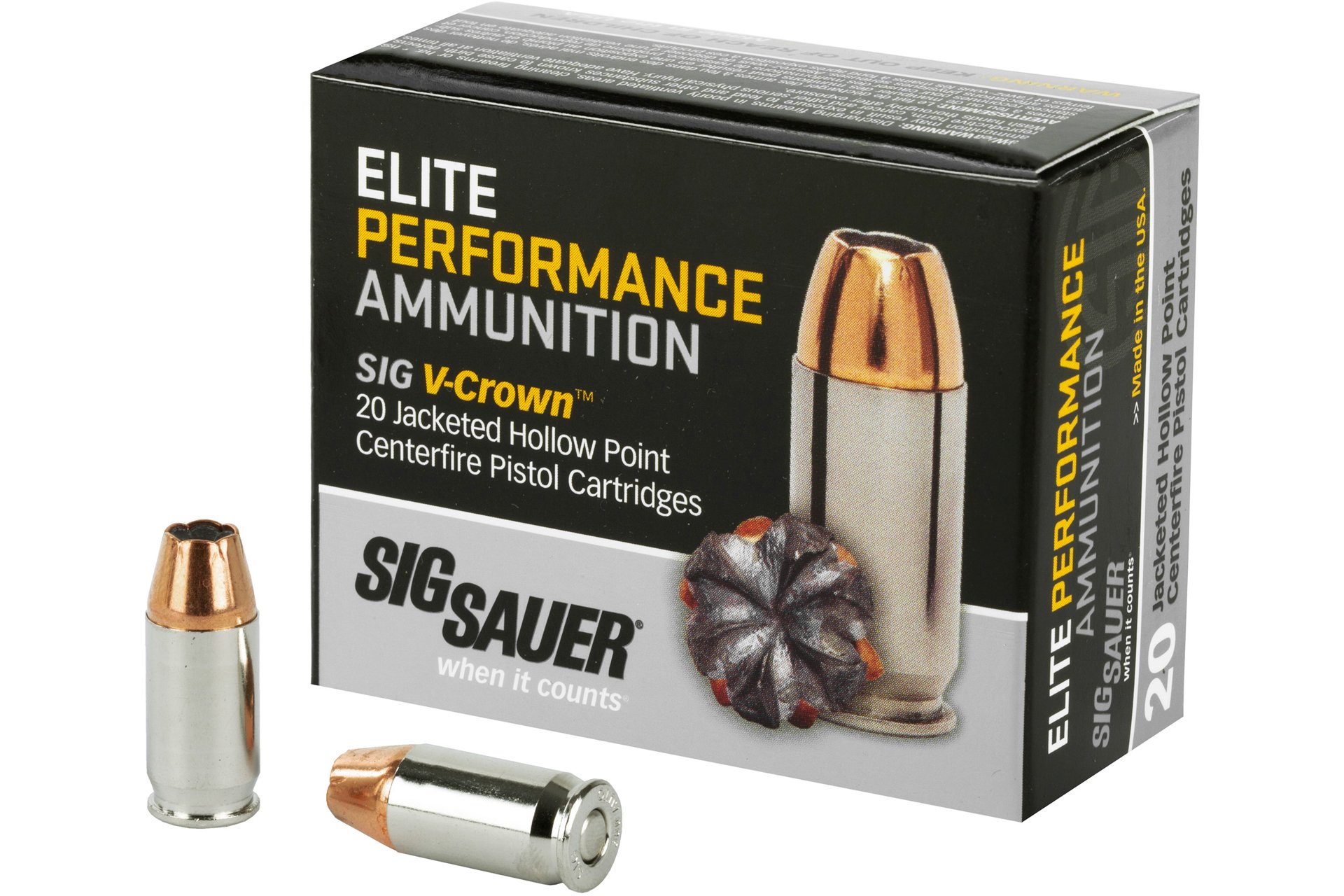 Sig Sauer Elite Performance V-Crown Ammunition 380ACP 90 Grain Jacketed Hollow Point Handgun Ammo - 20 Rounds - E380A1-20