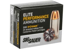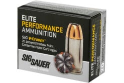 SIG V-Crown defensive rounds combine perfected material specifications and fine-tuned design innovations, including a stacked hollow point cavity, to deliver exceptional on-target energy with maximum weight retention and optimal expansion for ultimate stopping power.