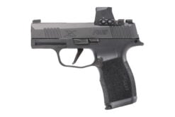 SIG Sauer has equipped the P365X ROMEO-X with the ROMEO-X Compact red dot optic, enhancing the shooter’s accuracy and speed in target acquisition. This system is complemented by the standard X-RAY 3 Day/Night Sights, which ensure visibility in all lighting conditions. The pistol’s stainless steel slide is finished with Nitron, offering both durability and a sleek appearance.