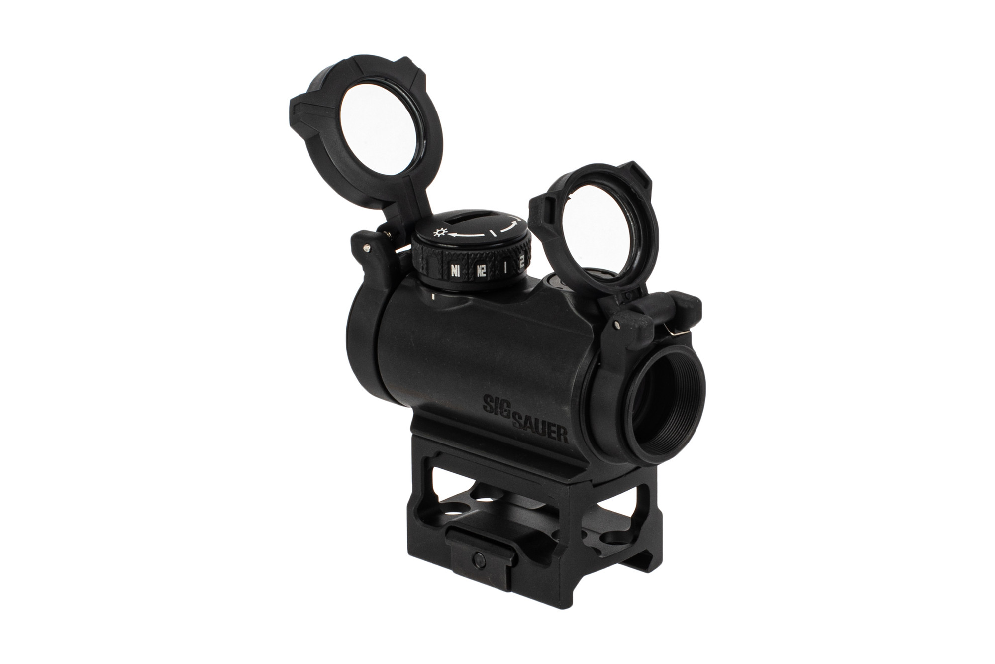 SKU: 7840 Categories: Excluded from Codes, Optics & Sights, Red Dot / Holographic Sights DescriptionThe SIG Sauer Romeo-MSR Red Dot Sight is highly versatile and compatible with a wide variety of firearms including the MSR, carbines, shotguns, and even air rifles. It is a fully sealed design made from aluminum making this an extremely durable option for any use case. The protected emitter projects a 2 MOA red dot for quick and precise shooting. The top mounted rotary dial allows you to quickly switch between 10 different brightness settings and 2 night vision settings. The battery compartment is also located in the rotary knob for easy access and runs for about 20,000 hours on a CR1632 battery. The lenses are fully coated for optimal light transmission and clarity and like most red dots has unlimited eye relief and zero parallax. Additionally, it comes with see through flip up lens covers for added protection during storage. Another bonus of this red dot optic is that it comes with a skeletonized lightweight riser mount set for an absolute co-witness with iron sights.