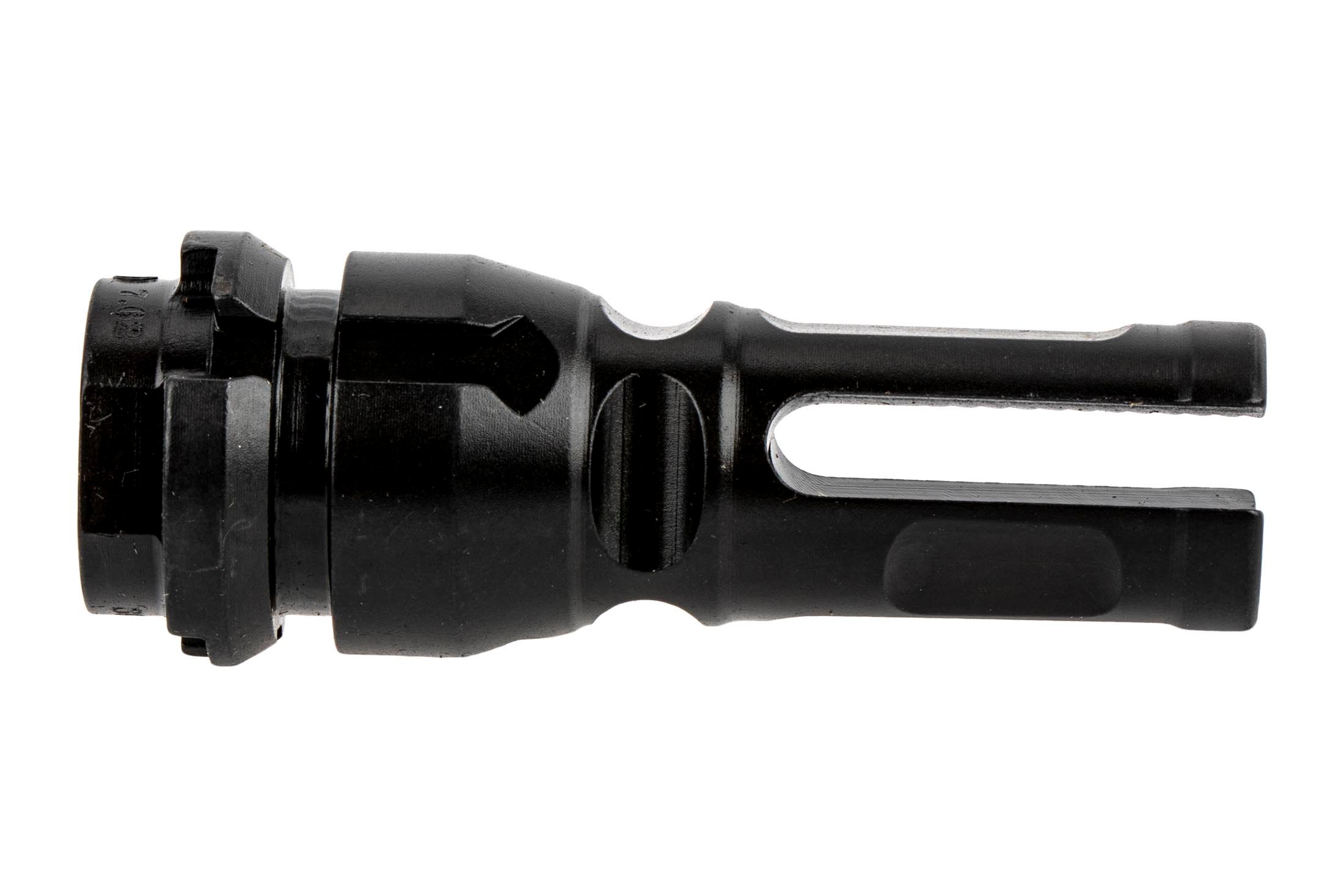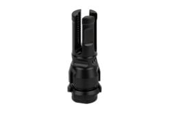 The advanced design of the NOX does more than just a fantastic job at keeping muzzle flash out of your eyes. The advanced design features a wide bottom prong that helps provide a little extra protection from muzzle rise while also drastically reducing dust signature when shooting from kneeling or prone positions. The serrations on the inner surface of each prong help create a more turbulent environment that kills muzzle flash. This model fits 5/8×24 threaded .30 caliber barrels.