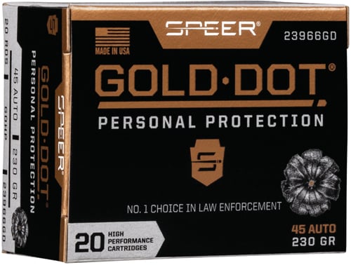 Speer Ammo 23966GD Gold Dot Personal Protection 45 ACP 230 gr Hollow Point (HP) Handgun Ammo - 20 Rounds