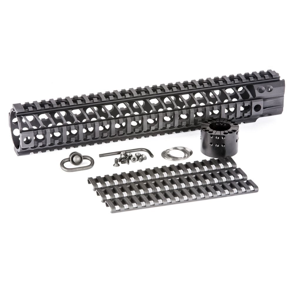 SKU: 15625 Category: AR-15 Handguards DescriptionThe Spike’s Tactical LW BAR2 (Big Ass Rail) is a 1pc free floating quad-rail thatÍs machined from 6061-T6 aluminum with a barrel nut machined from 7075-T6 aluminum and finished in type III hardcoat anodizing on the rail and barrel nut. The main benefit of the BAR rail is to those who wish to have a suppressor inside of the rail. The BAR rail also offers excellent heat ventilation, built in anti-rotation tabs to keep the rail and even the barrel nut from coming loose, and of course; sexy styling.