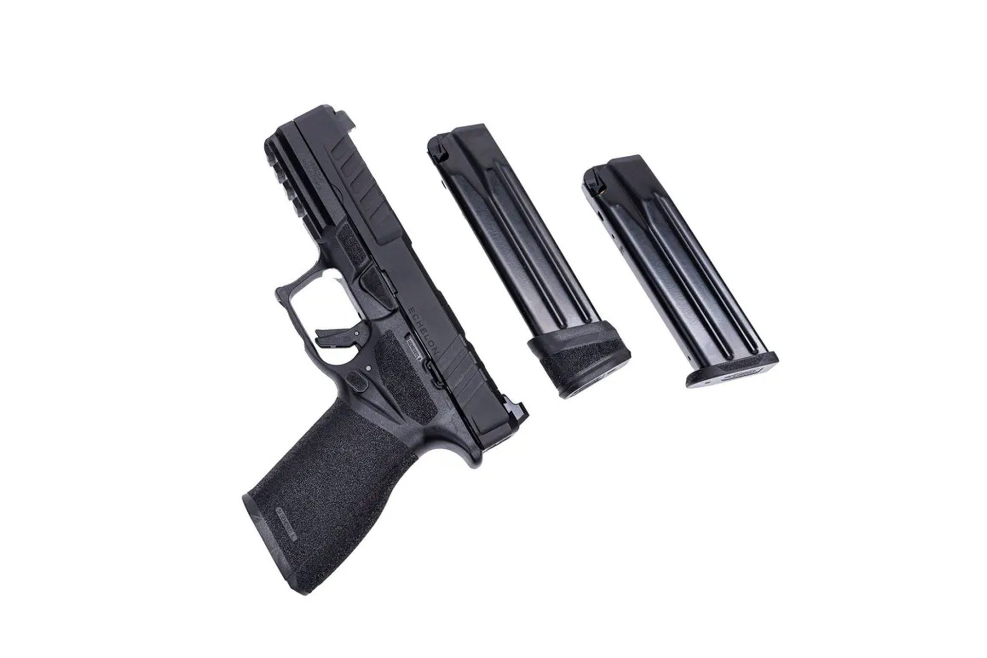 Additionally, the Echelon pistol comes with 3 backstraps, so you can customize the pistol right out of the box. The enhanced grip texture provides a perfect grip in wet conditions and even extends onto the indexing points for better recoil control. The slide also features improved serrations for easy slide manipulation and this model comes equipped with a tritium/luminescent front sight and a U-Notch rear. Because of the deletion of the slide adapter plate, these sights will still be visible through some optics. The 4.5″ hammer forged barrel features a Melonite coating and will last you thousands of rounds and a threaded option is also available. The Springfield Armory Echelon comes with one 17 round magazine and one 20 round magazine.