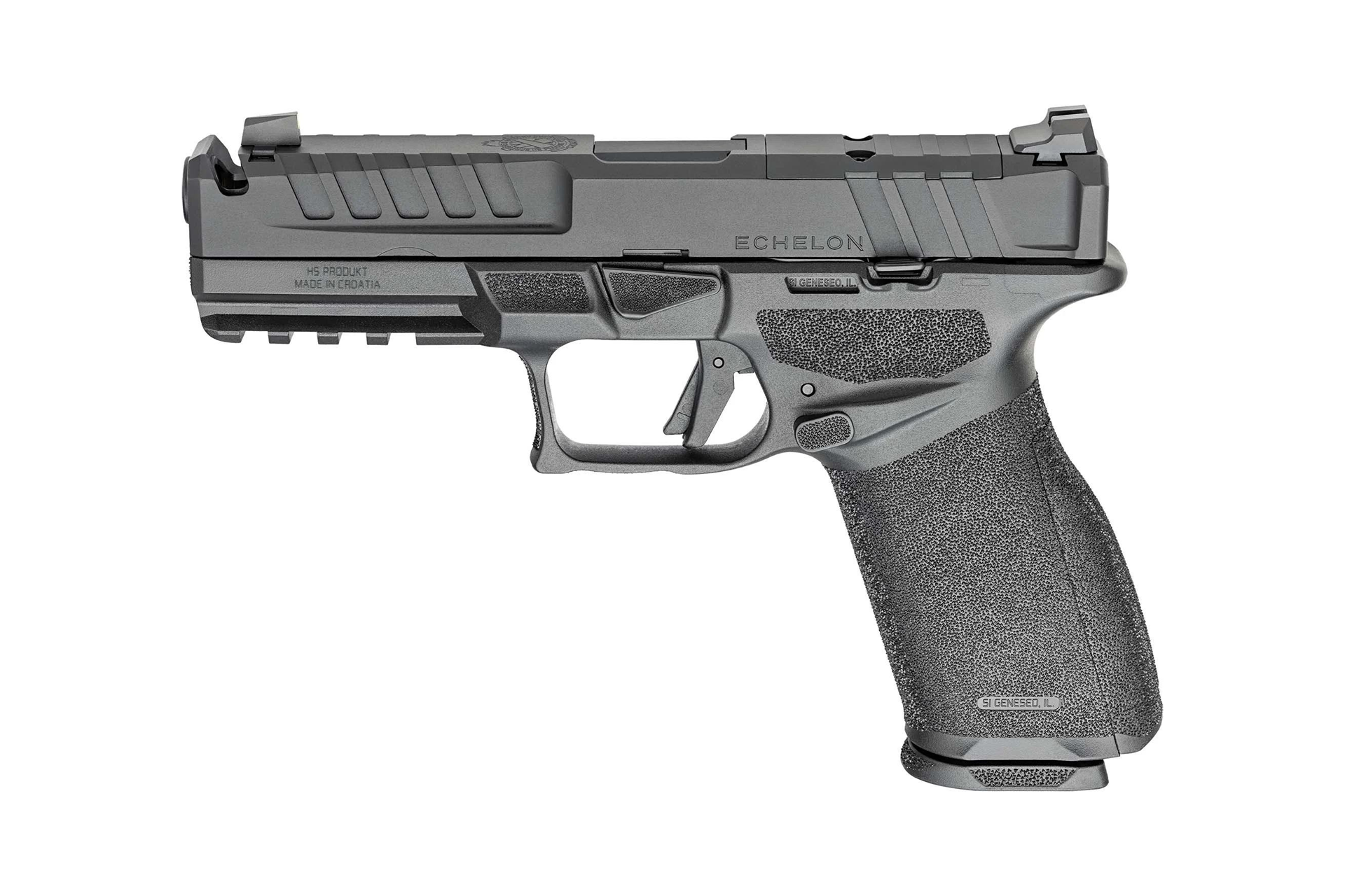SKU: 26201 Category: Pistols DescriptionExperience the pinnacle of modern firearms engineering with the Springfield Echelon Comp 4.5F 9mm Pistol, a striker-fired semi-automatic handgun designed for precision, reliability, and versatility. Built around Springfield Armory’s innovative Central Operating Group (COG) system, this full-size polymer-framed pistol delivers exceptional modularity and performance right out of the box. Whether you’re a competitive shooter, home defender, or range enthusiast, the integral compensator tames recoil for faster follow-up shots, while the factory-installed Crimson Trace CT-1500 red dot optic ensures quick target acquisition in any lighting. The Gear-Up Bundle elevates this package with five magazines and a dedicated range bag, making it the ultimate ready-to-run solution for tactical 9mm pistol users.