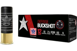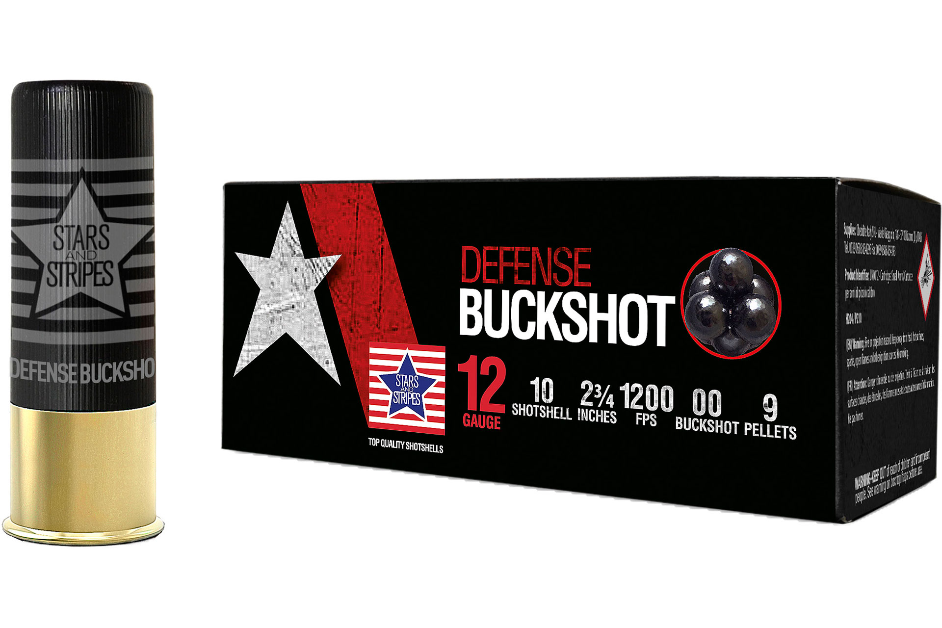Stars and Stripes Defense Ammunition, 12 Gauge 2.75, Buckshot, 9 Pellets, 10 Round Box