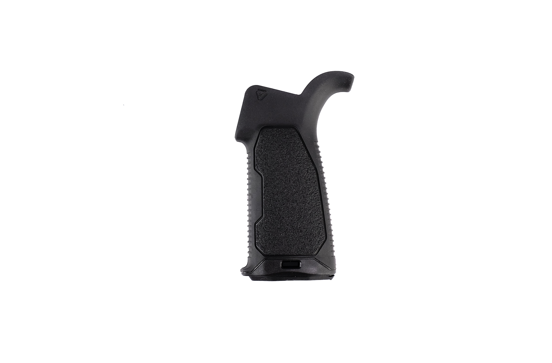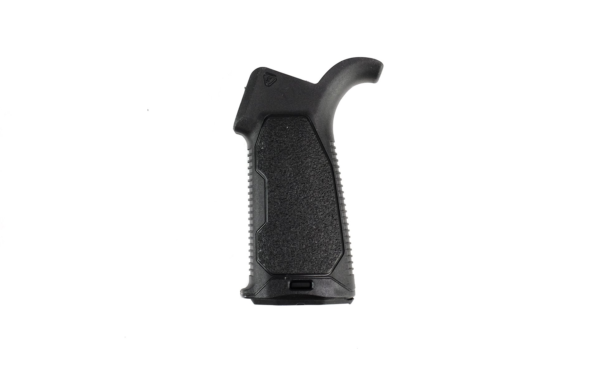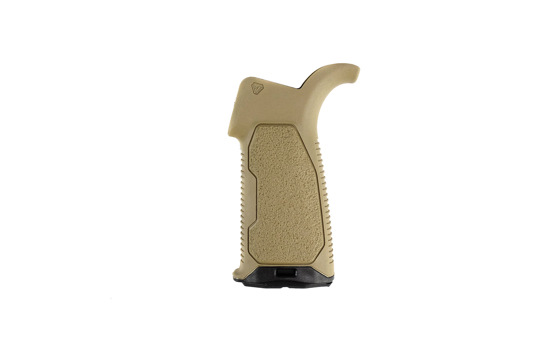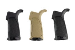 The Strike Overmold Grip is more streamlined and tapered where the webbing of the hand goes, to allow more range of movement of the firing hand when accessing controls. The grip has enough width in the palm area to maximize comfort during extended use.