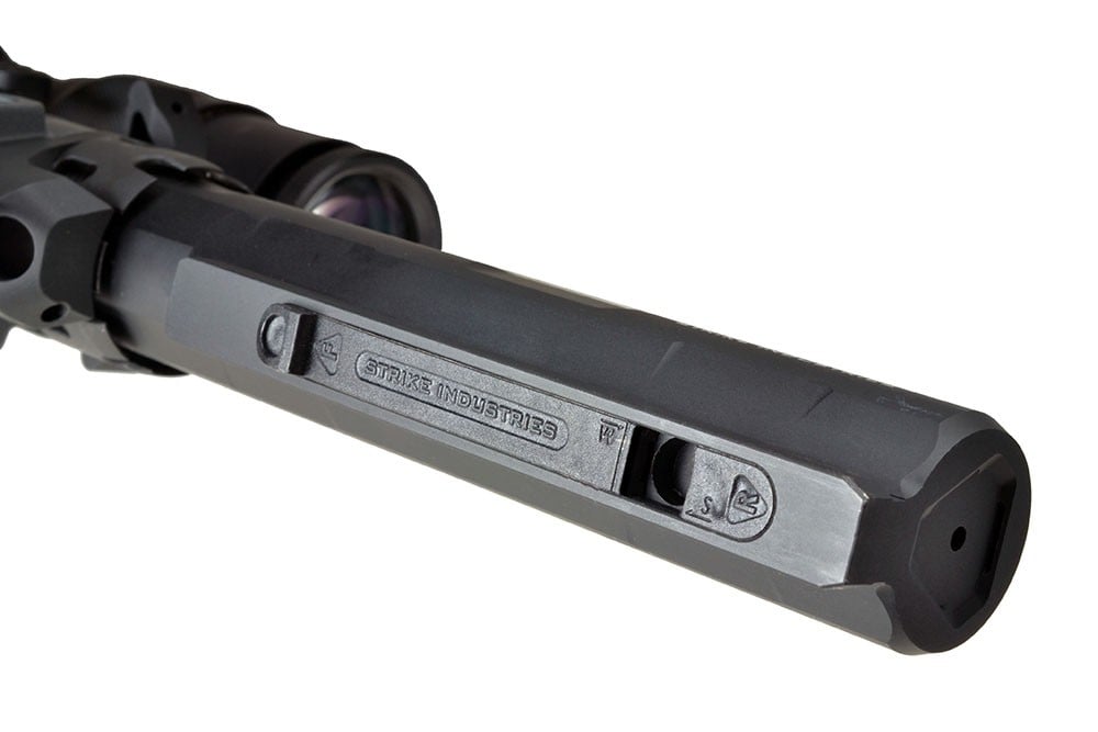 – Will fit any mil-spec 6-position buffer tube in addition to the Strike Industries 7 position Advanced Receiver Extensions.