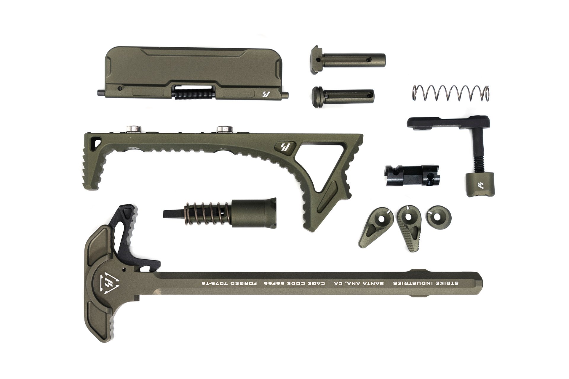 SKU: BUNDLE-OD Categories: Accessories, Angled Foregrips, AR-15 Charging Handles, AR-15 Dust Covers, Bundles, Charging Handles, Control / Accent Kits, Dust Covers, Foregrips, Forward Assist / Dust Covers, Forward Assist Kits, Handguard / Rail Accessories, Lower Parts, Magazine Catches, Magazine Releases, Safety Selectors DescriptionAR15Discounts is proud to announce our first collaboration/exclusive with Strike Industries! We have launched a very limited run of OD Green parts that can be purchased individually, as well as in this bundle, including: