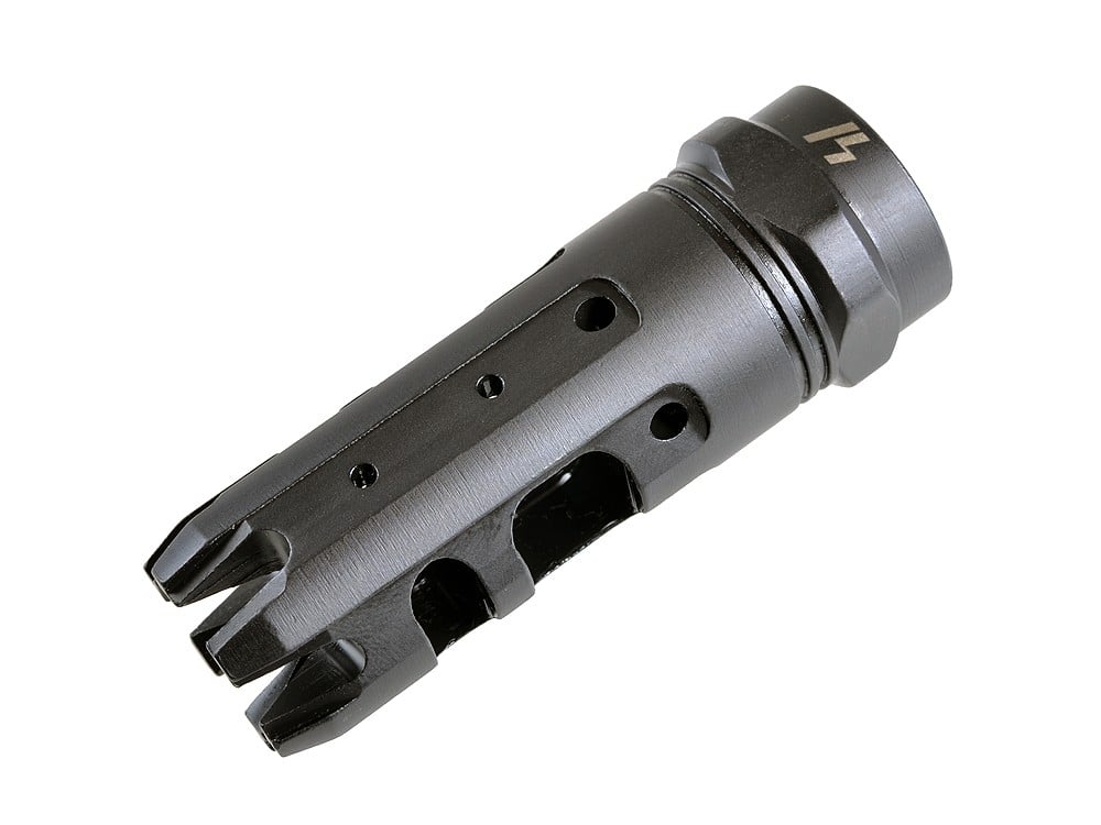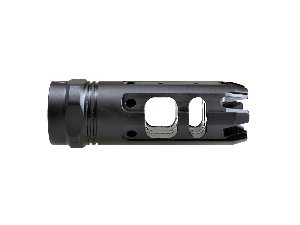The Strike Industries King-Comp features a large dual chamber design, which was engineered to reduce felt recoil and  help reduce the side concussion with the specifically angled gas ports. The King-Comp is a great alternative if you’re looking for a cross between a compensator and a muzzle brake or effective “combo” muzzle device.