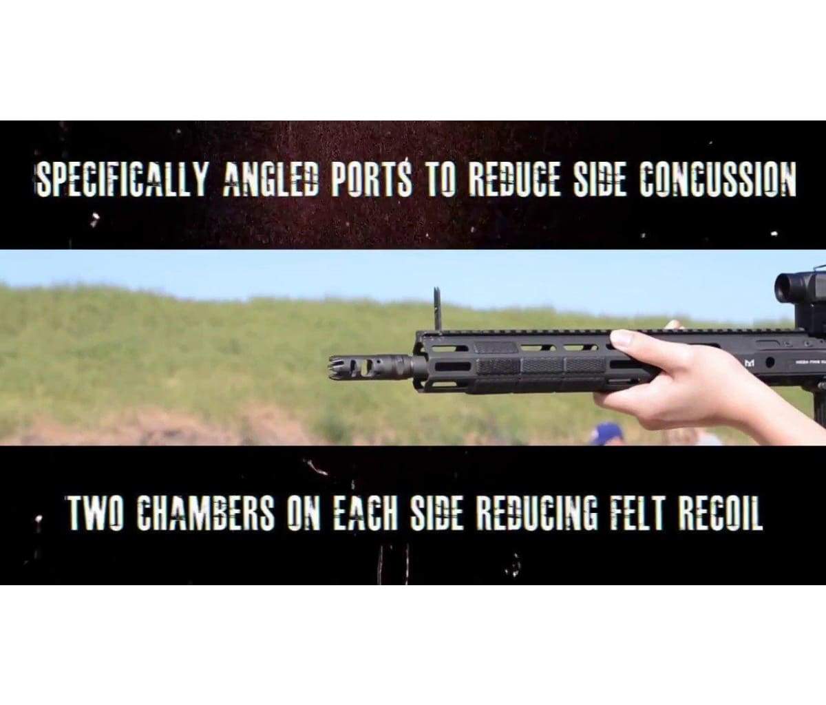 – Specifically angled gas ports to cancel side concussion.