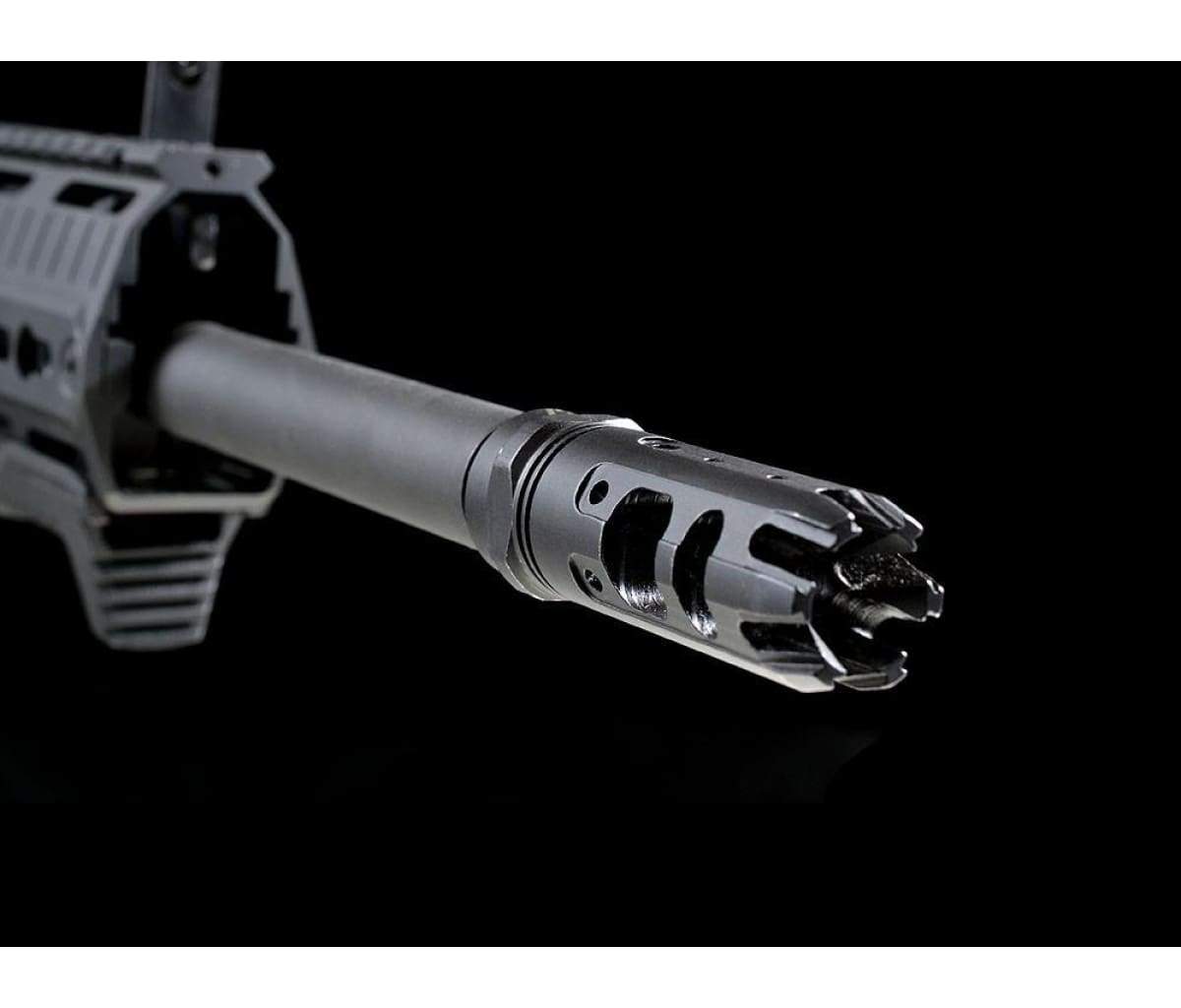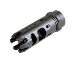 SKU: 1867 Categories: Muzzle Devices, Restricted State Compliant DescriptionThe Strike Industries King-Comp features a large dual chamber design, which was engineered to reduce felt recoil and help reduce the side concussion with the specifically angled gas ports. The King-Comp is a great alternative if you’re looking for a cross between a compensator and a muzzle brake or effective “combo” muzzle device.