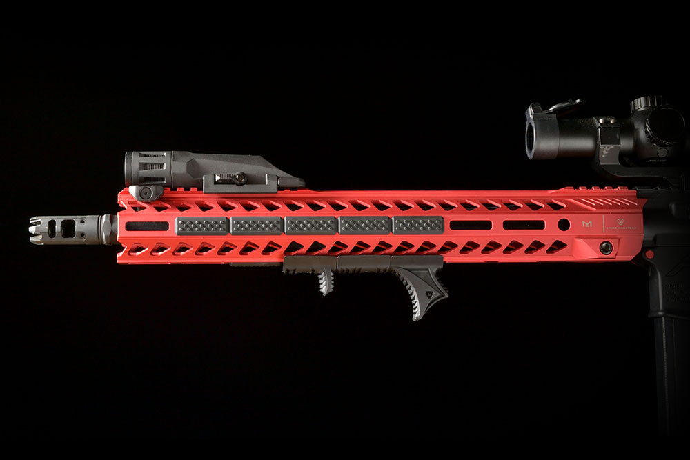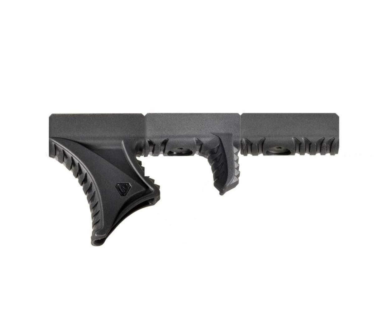 Introducing the Strike Industries Hand Stop Kit. Gone are the days of having to keep extra handstops, foregrips, and other grip accessories laying around. Including 3 sections that can work together or as standalone attachments, there are over half a dozen ways to configure the Link hand-stop kit for different shooting styles.The three sections are made from durable, reinforced, & heat-resistant polymer. Each section uses a single modified T-nut that has been tried and tested for superior lock-up. The HSK is directly mounted to either M-Lok slots or Keymod holes without the need for adapters in between, resulting in a highly ergonomic and secure lock-up.