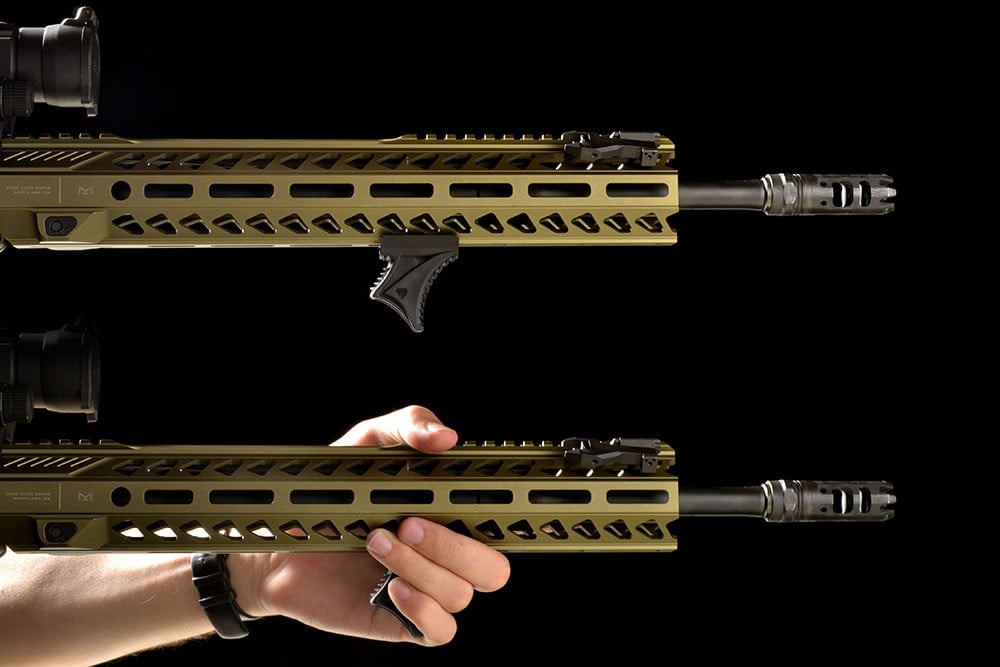 SKU: 2936 Categories: Hand Stops, Under $20, Accessories, Foregrips, Handguard / Rail Accessories DescriptionModern handguard grips have come a long way. They enhance the shooters skills through better recoil management and ease of indexing repeatability for speed. But one grip style may not be suited for everybody, and sometimes rail space is limited so just a hand-stop can fit. But what if you didn’t have to settle for just onegrip style