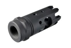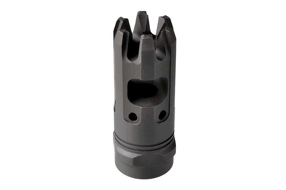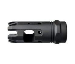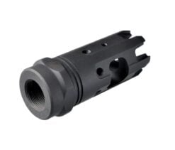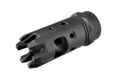 SKU: 1865 Categories: Muzzle Devices, Restricted State Compliant DescriptionThe Strike Industries Mini King Comp 9mm brings the proven performance of the full size King Comp in a more compact, lighter package designed exclusively for 9mm carbines. The Mini King Comp retains the full range of features of the King Comp in a single chamber format. The large single baffle captures the vented gasses for recoil mitigation. The redirection jets work to stabilize the muzzle end for faster follow up shots while dampening felt concussion on the shooter end to maintain the pleasant shooting characteristics of 9mm carbines. The end of the compensator features the “crown” of standoff/wire cutting tines that gives the compensator its name. While 9mm carbines are known for low recoil and fast handling characteristics, give yours an extra edge in performance with the SI Mini King Comp