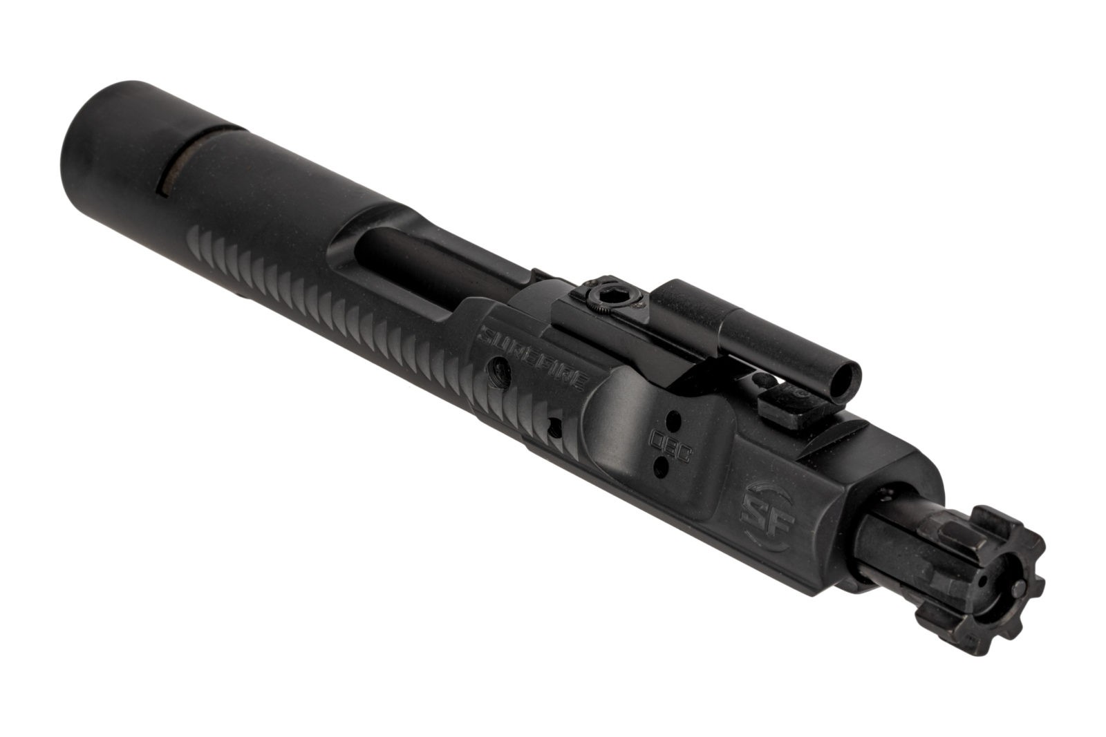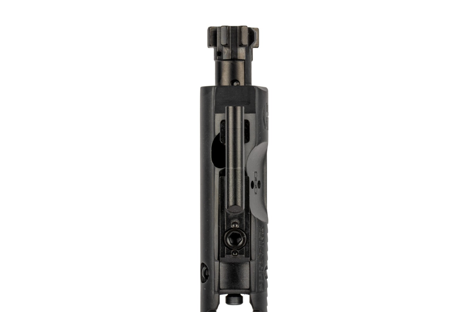 The SureFire AR-15 Optimized Bolt Carrier also features a shortened gas key and a shorter buffer to increase stroke by 60% to allow for more time for the magazine to feed rounds into the chamber. The combination of the buffer weight carrier weight, and spring rate increase inertia when the bolt picks up a round out of the magazine.