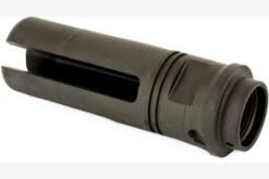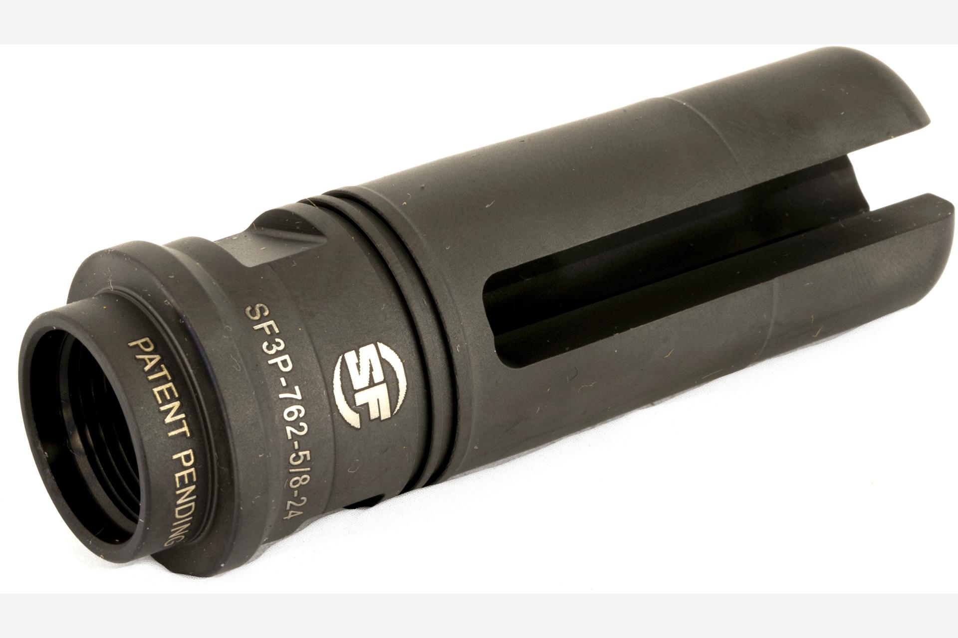 The advanced SureFire SF3P-762-5/8-24 three-prong flash hider, which fits the Armalite AR-10, DPMS LR308, and 7.62 mm rifles with 5/8-24 muzzle threads, features a patent-pending design that greatly reduces muzzle flash-typically greater than 99%-when compared with a plain muzzle. Boasting robust tines built to withstand the rigors of combat, the SF3P-762-5/8-24 also serves as a rock-solid mounting adapter for SureFire SOCOM Series 7.62 mm Fast-Attach(R) suppressors. Precision machined from US mill-certified heat-treated stainless steel bar stock-and including high-precision single-point cut threads for optimum thread interface-the SF3P-762-5/8-24 flash hider is given a black Ionbond DLC coating to provide maximum protection under harsh environmental conditions and to facilitate cleaning, even after extreme use. When used in conjunction with a SureFire SOCOM Series suppressor, the patent-pending design of the SF3P-762-5/8-24 provides multiple bearing surfaces to ensure superior suppressor alignment and to prevent the audible ringing of tines inside the suppressor. A rear labyrinth seal minimizes potential carbon buildup in the indexing system and facilitates suppressor removal after extended firing. SureFire flash hiders are individually inspected for concentricity and alignment and are covered by SureFire’s No-Hassle Guarantee.