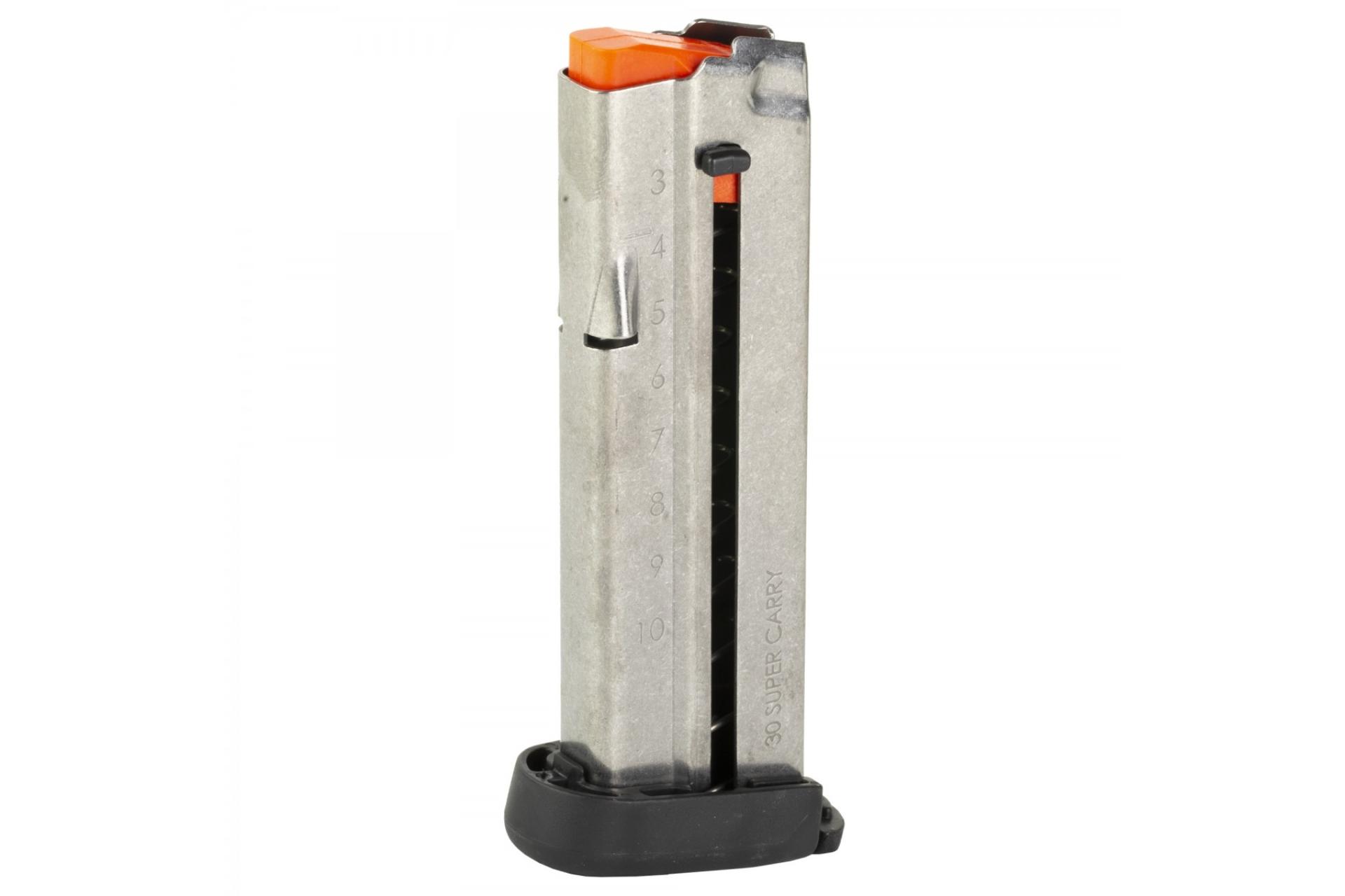 SKU: 21435 Category: Magazines DescriptionThe Smith & Wesson® S&W M&P® Shield™ EZ 30 Super Carry 10-Round Magazine is the perfect addition to your conceal and carry kit. Manufactured to the same specifications and tolerances as all original magazines, this reliable 10-round magazine delivers a precise fit and reliable operation with your favorite target or personal defense pistol. Chambered in the new .30 Super Carry cartridge, this magazine features durable stainless steel construction with tough impact-resistant polymer baseplates for unparalleled strength with lasting corrosion and shock resistance. Plus, the steel feed lips, combined with a steel wire spring and polymer follower, allow for easy loading while ensuring proper cartridge alignment and smooth feeding performance in virtually any environment. Carry in confidence with a few spare M&P Shield EZ .30 Super Carry magazines today! Order now.